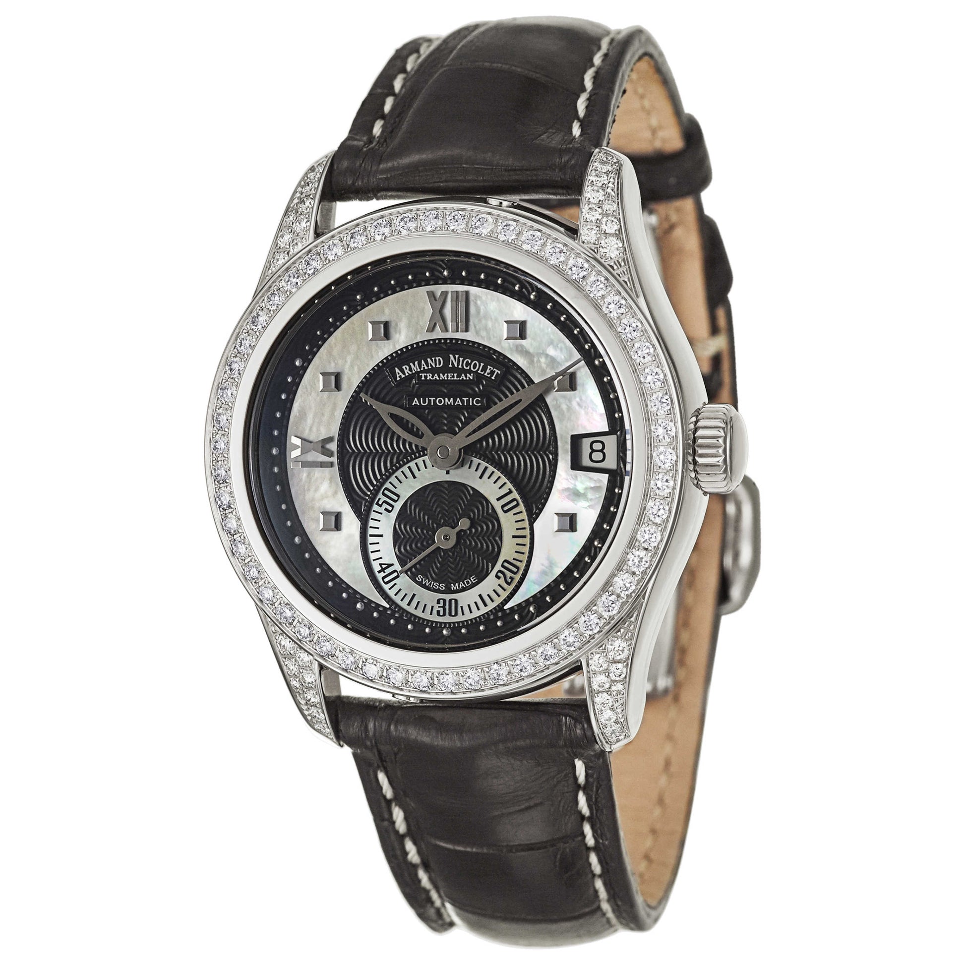 Armand Nicolet, M03, Women's Watch, Stainless Steel and Diamonds Case, Leather Alligator Strap, Swiss Mechanical Automatic (Self-Winding), 9155L-NN-P915NR8