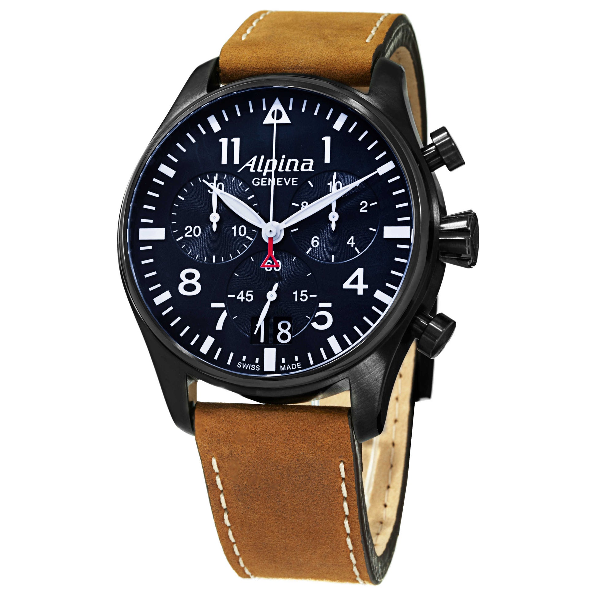 Alpina, Startimer Pilot, Men's Watch, Stainless Steel Case, Leather Strap, Quartz, AL372N4FBS6