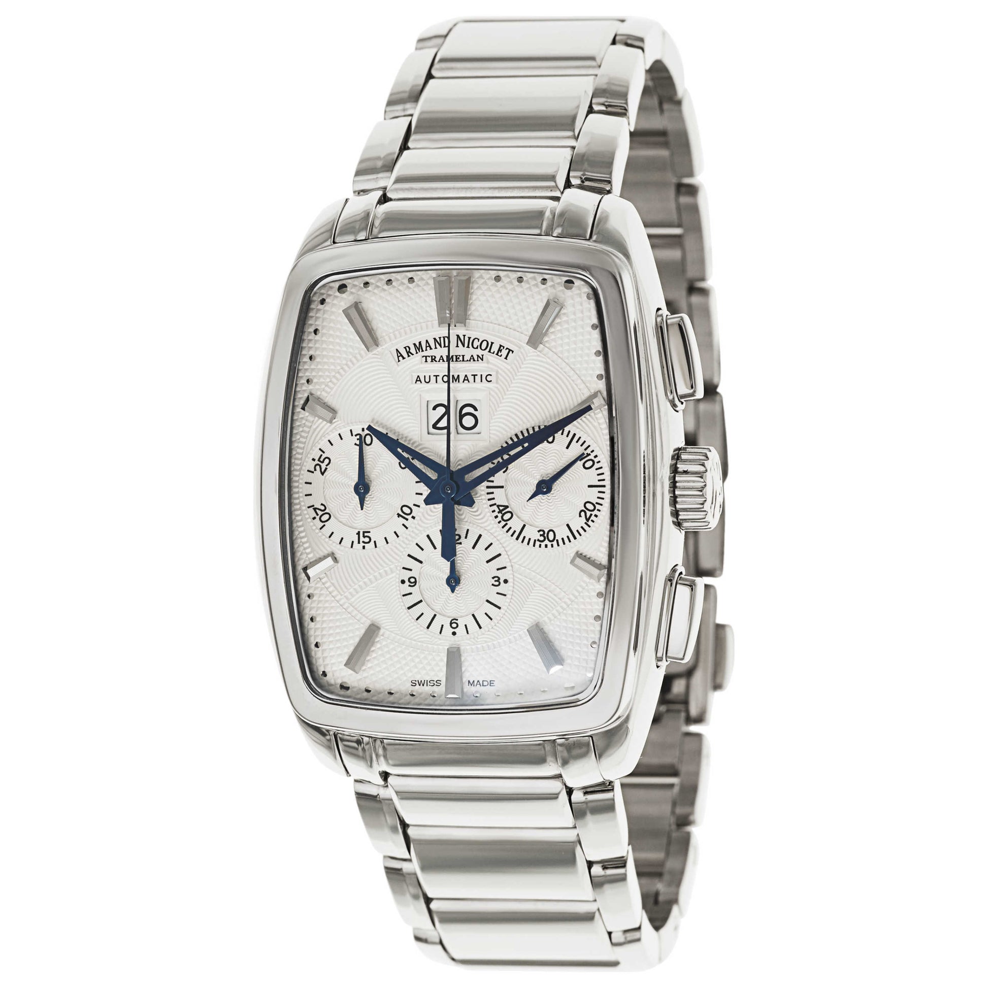 Armand Nicolet, TM7 Big Date & Chronograph, Men's Watch, Stainless Steel Case, Stainless Steel Bracelet, Swiss Mechanical Automatic (Self-Winding), 9638A-AG-M9630