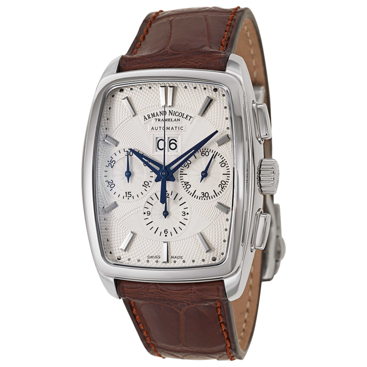 Armand Nicolet, TM7 Big Date & Chronograph, Men's Watch, Stainless Steel Case, Leather Alligator Strap, Swiss Mechanical Automatic (Self-Winding), 9638A-AG-P968MR3