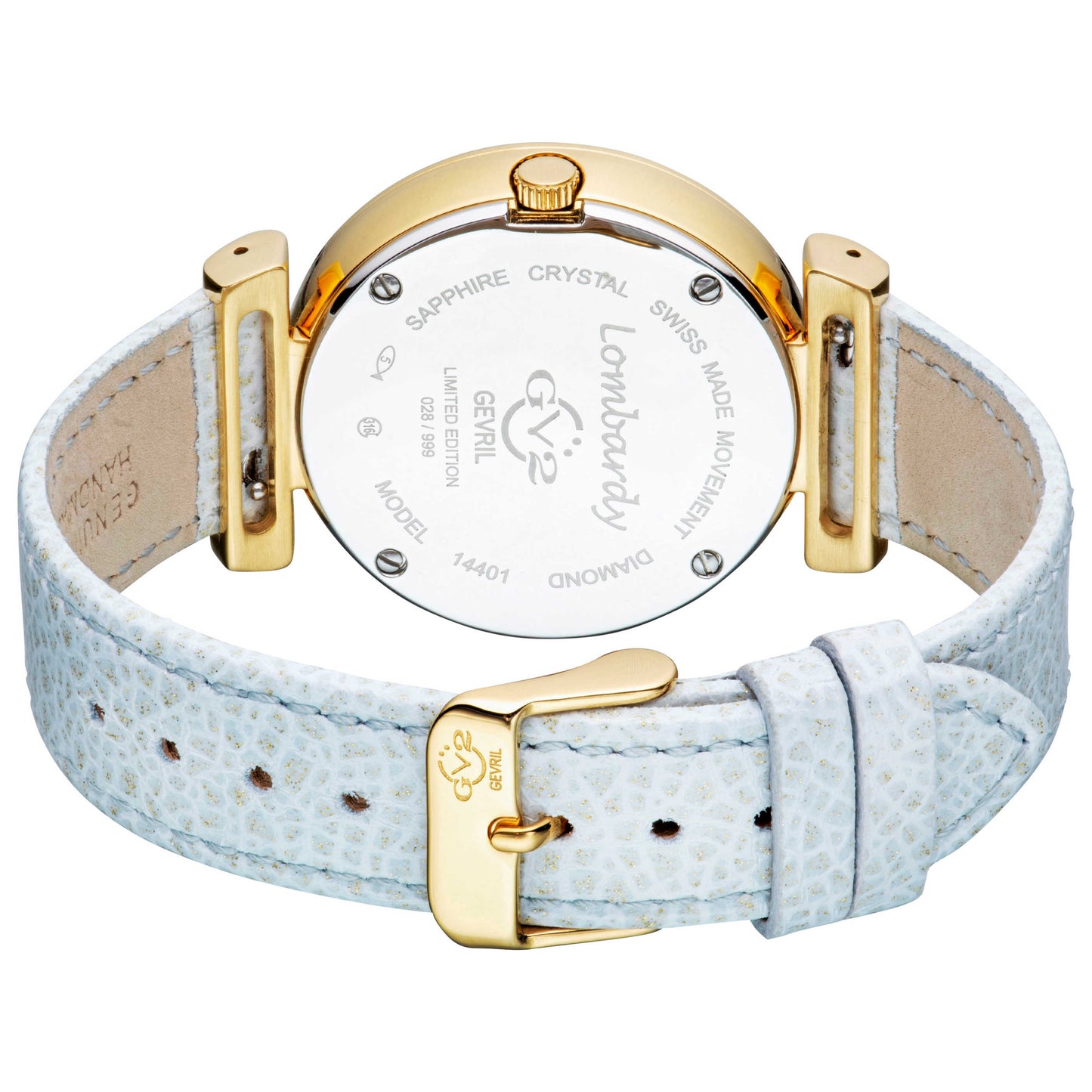 Unveil a piece of Swiss artistry with the GV2 by Gevril Lombardy women's watch. This elegant Swiss-made quartz timepiece features a sturdy round 36mm stainless steel case, protected by a scratch-resistant, anti-reflective sapphire crystal. The dial comes in a timeless white color, beautifully offset by the silver leather strap that secures with a pin buckle. A simple pull and push crown, coupled with a water resistance of up to 50m, provides a convenient blend of style and function. This watch, enclosed with a closed back, offers a subtle hint of luxury to your everyday wear. 14401
