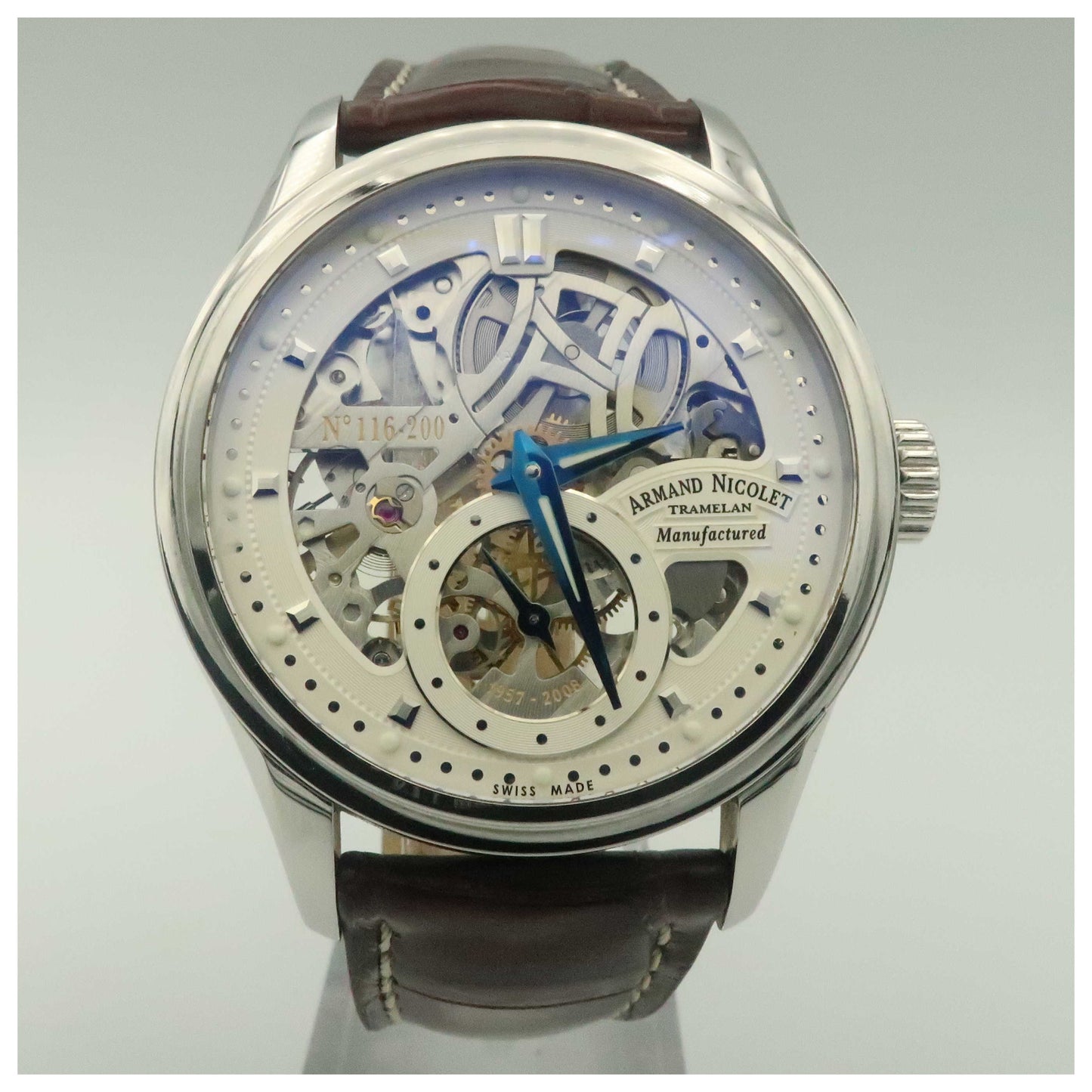 Armand Nicolet, LS8, Men's Watch, Stainless Steel Case, Leather Alligator Strap, Swiss Mechanical Manual (Hand-Winding), 9620S-AG-P713MR2-SD