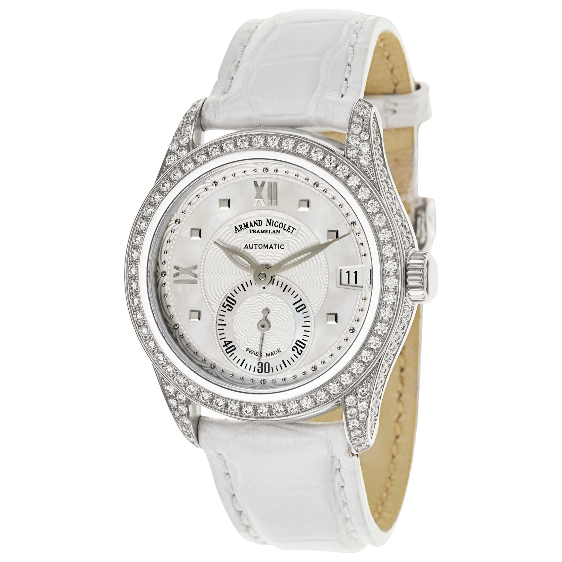 Armand Nicolet, M03, Women's Watch, Stainless Steel and Diamonds Case, Leather Alligator Strap, Swiss Mechanical Automatic (Self-Winding), 9155V-AN-P915BC8