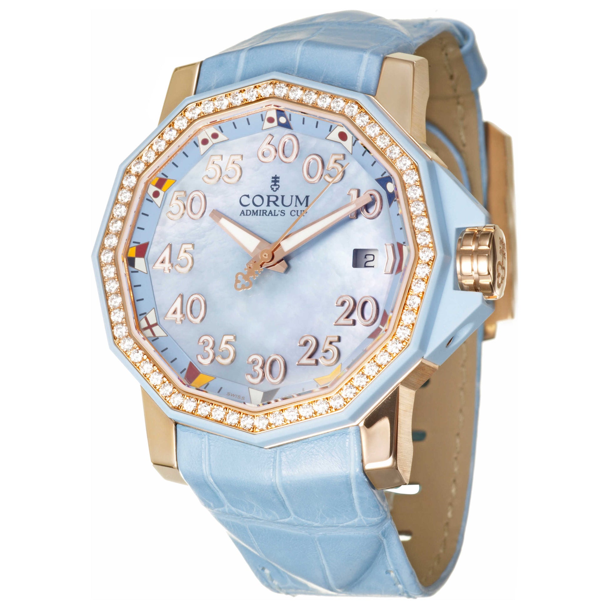 Corum, Admiral's Cup, Women's Watch, 18K Rose Gold and Diamonds Case, Leather Alligator Strap, Mechanical Automatic Self-Winding Swiss Movement, 082-953-85-0091-PN35