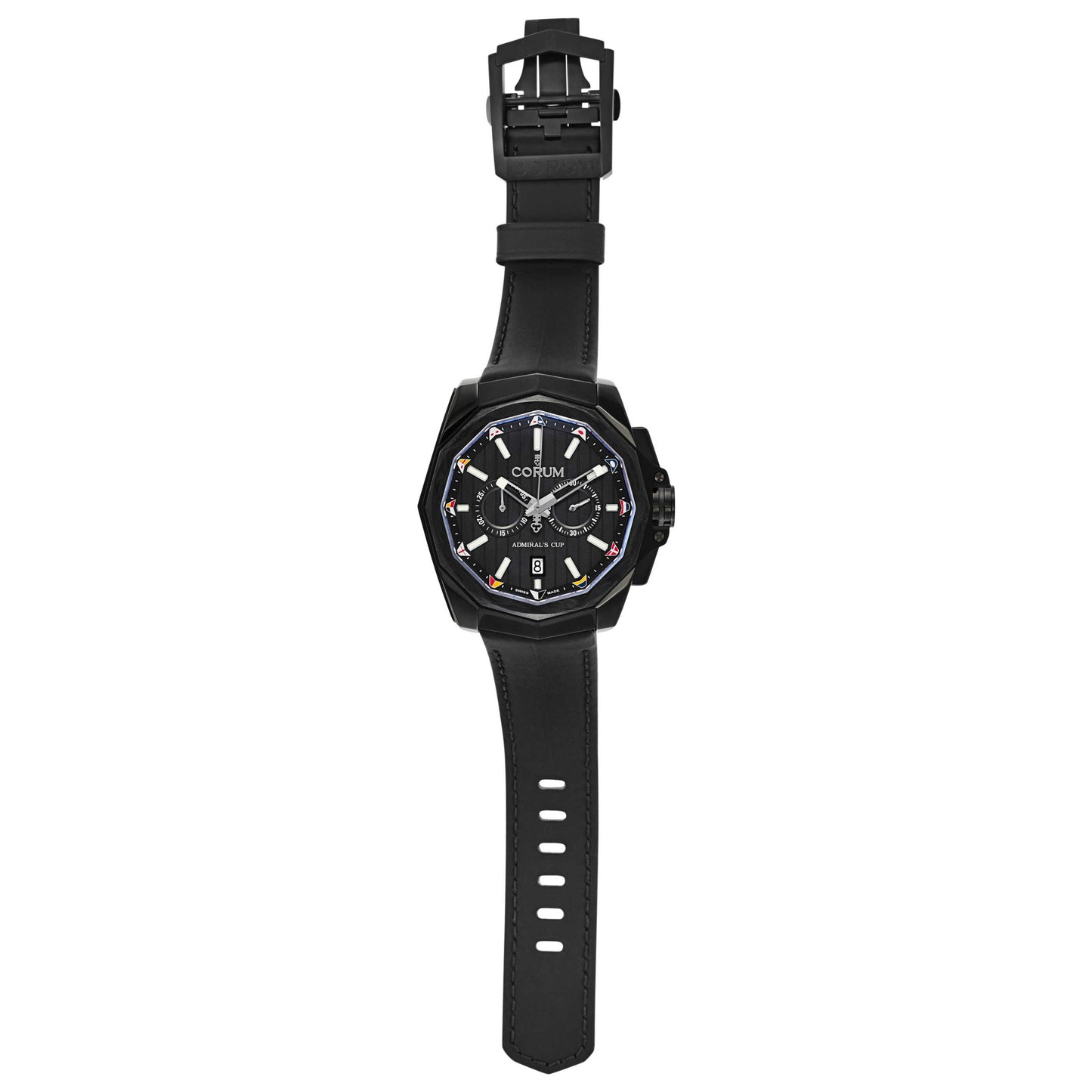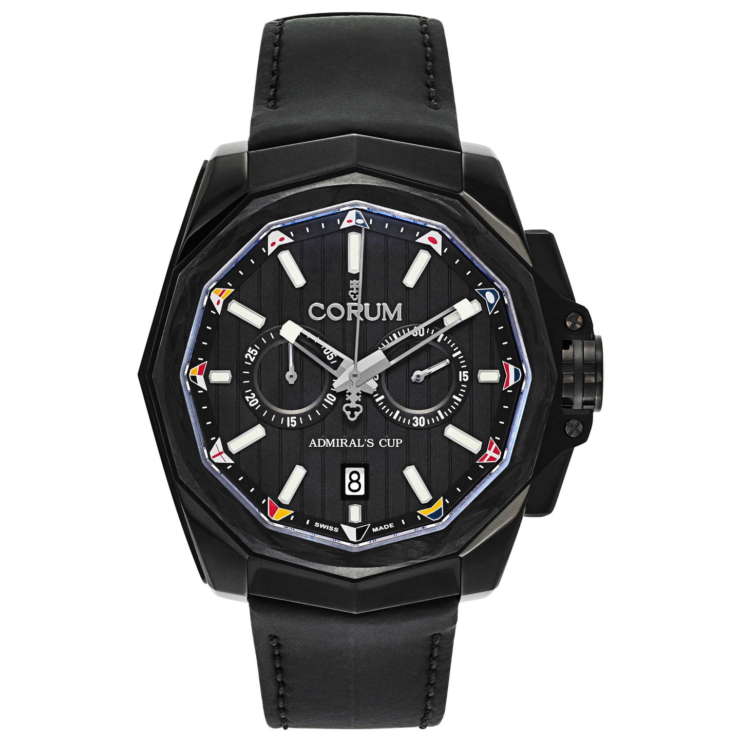 Corum, Admiral's Cup AC-One 45 Chronograph, Men's Watch, Stainless Steel Black PVD Coated Case, Leather Strap, Swiss Mechanical Automatic (Self-Winding), 116-101-36-0F61-AN20
