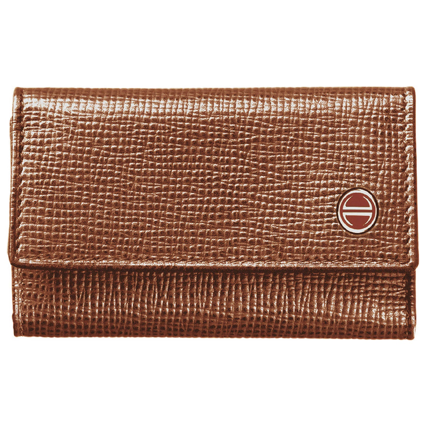 Fine Italian Leather, trifold, palladium accents, chestnut interior; holds up to 5 keys; 6.5 x 10 x 2 cm