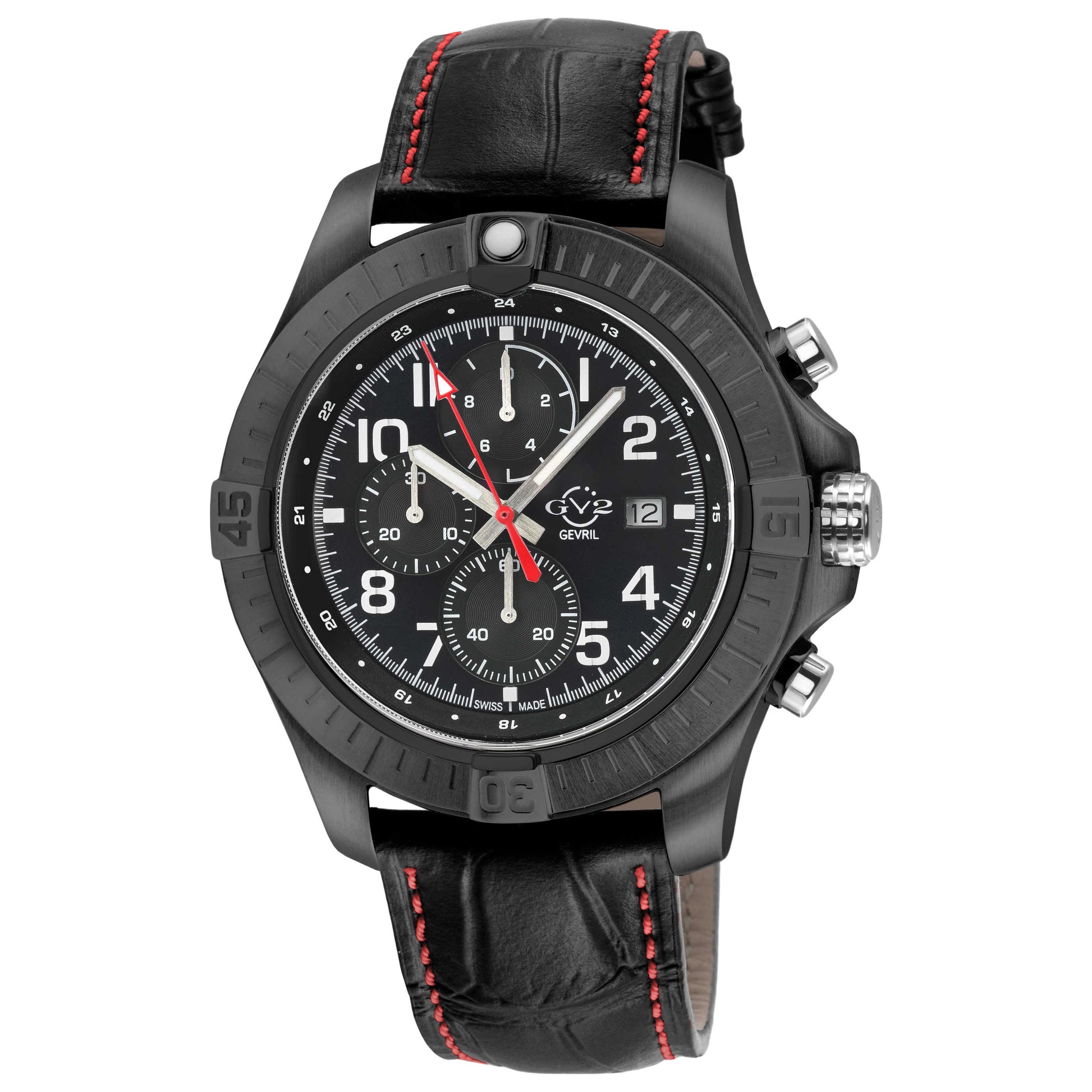 GV2 by Gevril, T38, Men's Watch, Stainless Steel Case, Leather Strap, Quartz, 42806