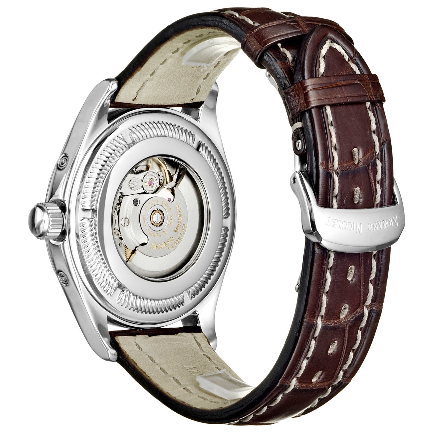 Armand Nicolet, M02, Men's Watch, Stainless Steel Case, Leather Alligator Strap, Automatic, 9142B-AG-P914MR2