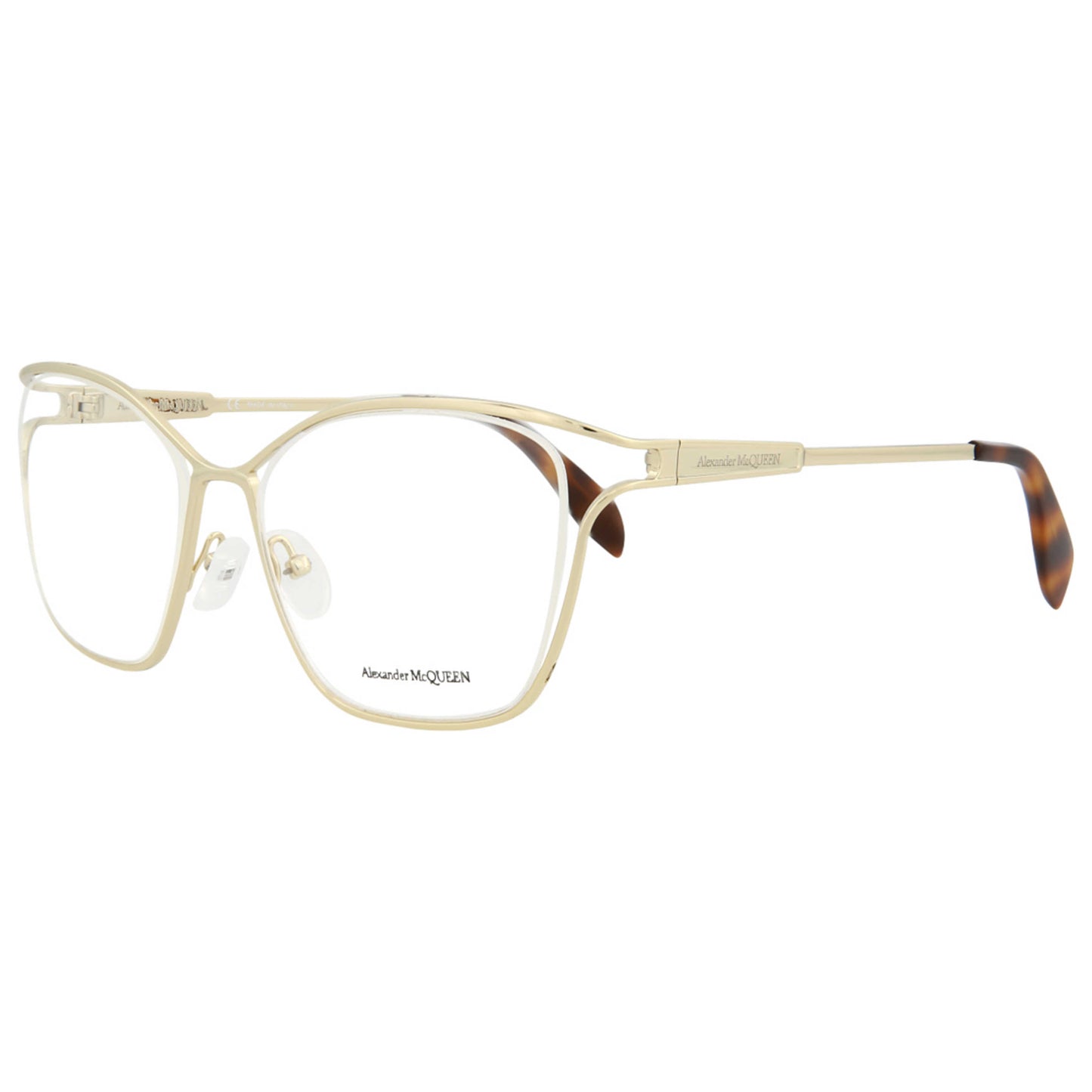 Discover luxury with Alexander McQueen women's opticals. Crafted with a gold metal frame and a 55mm lens width, these made-in-Italy spectacles elevate everyday elegance. AM0196O-30007064-002