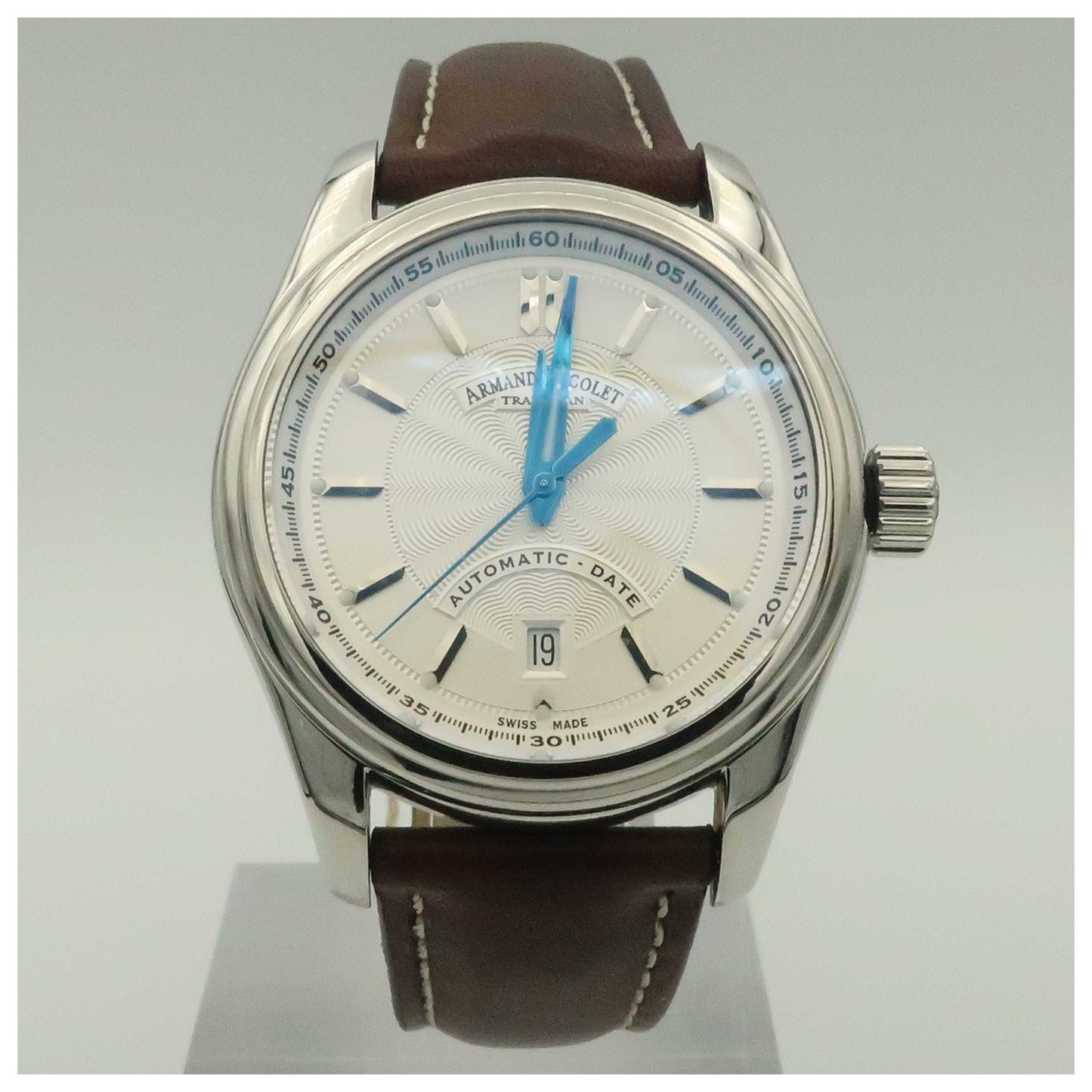 Armand Nicolet, M02, Men's Watch, Stainless Steel Case, Leather Strap, Swiss Mechanical Automatic (Self-Winding), 9140A2-AG-P140MR2-PO