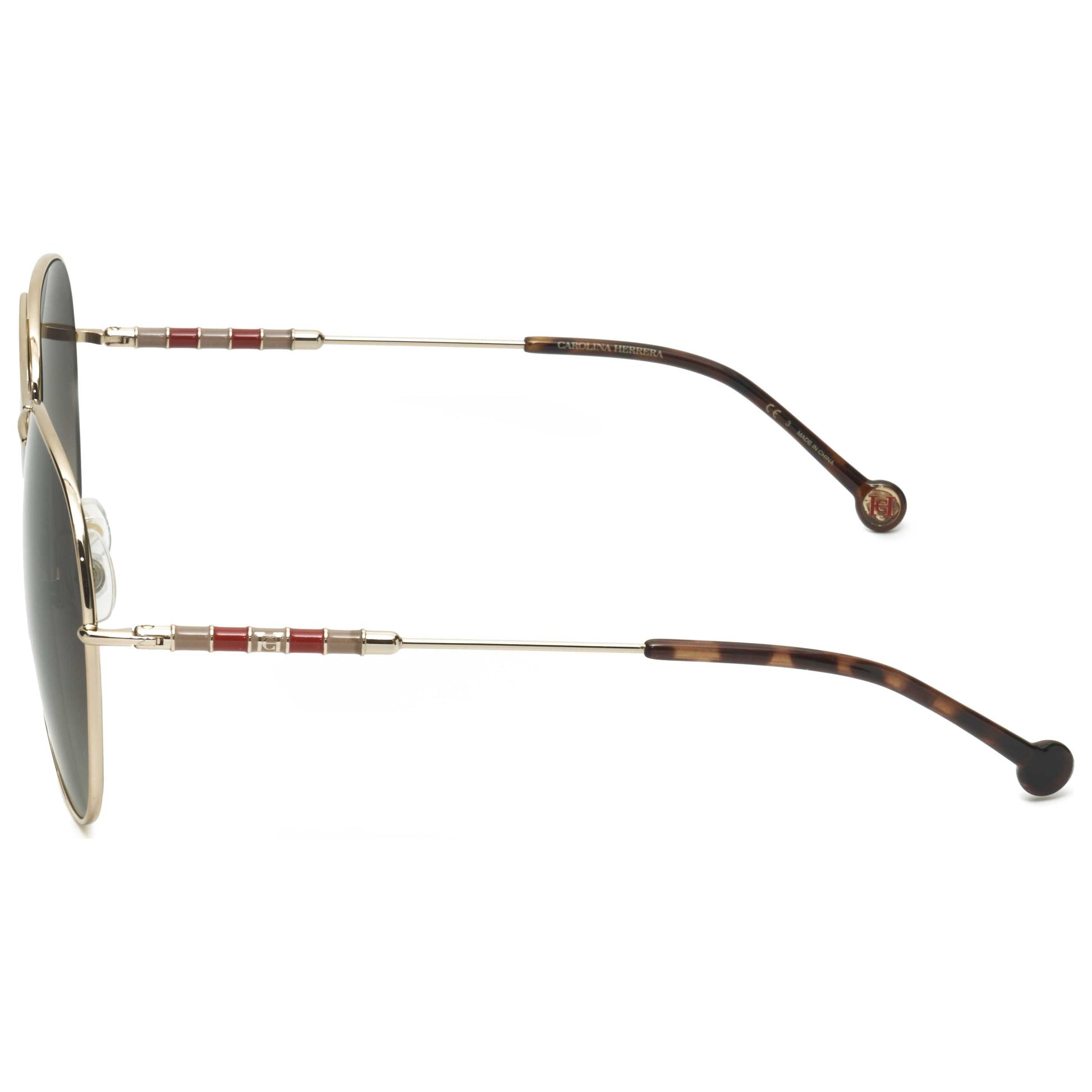 Discover the distinctive allure of Carolina Herrera women's sunglasses. These aviator-styled gems boast a golden metal frame and 64 mm brown lenses, delivering a chic statement and 100% UV protection. Embrace the sunshine in unmatched style and superior protection. CH0034S-0J5G-HA