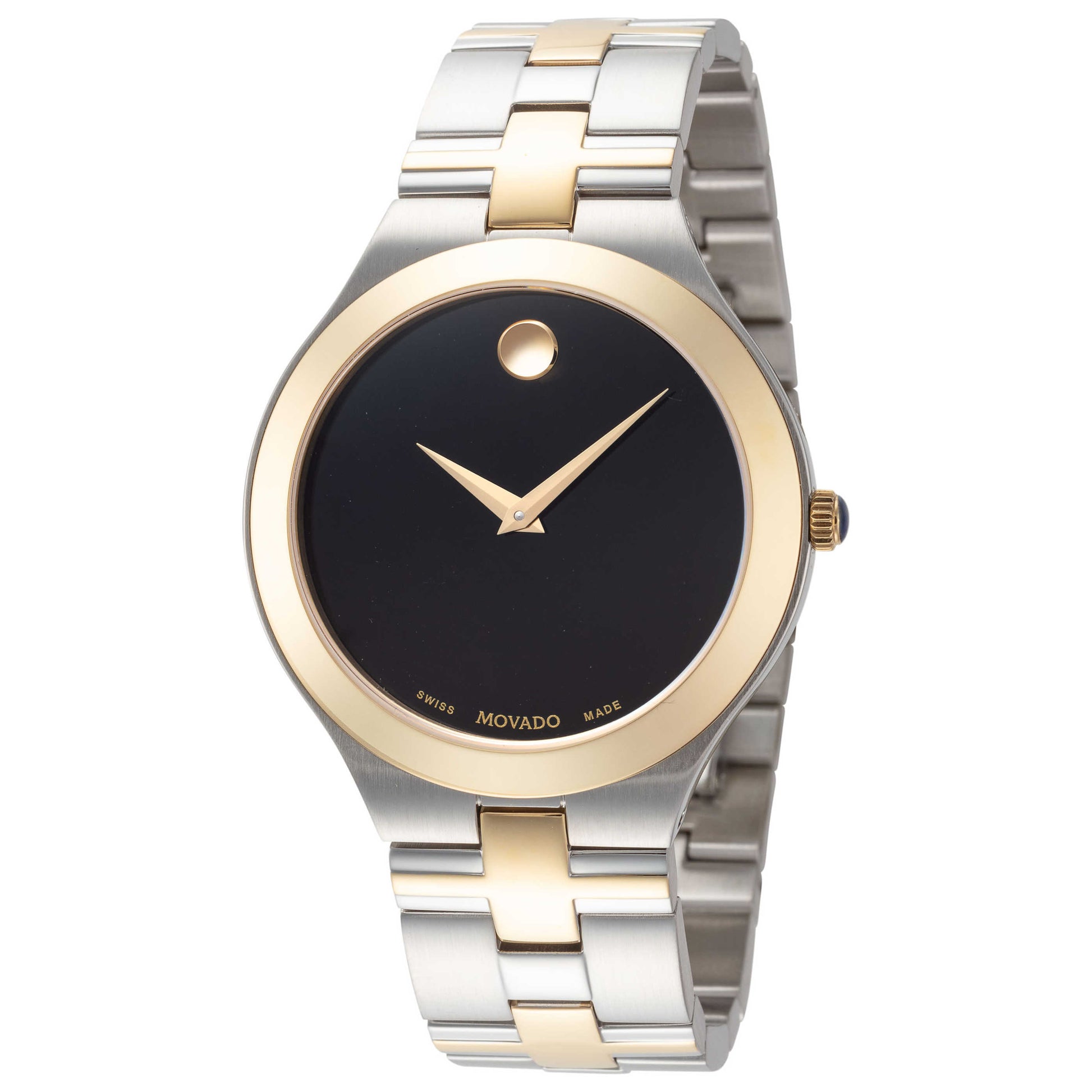 Step into timeless design with the Movado Juro Men's watch. Crafted in Switzerland, this quintessential timepiece features a quartz movement encased in a round stainless steel body with a scratch-resistant sapphire crystal. The dial, an iconic black, complements the two-toned stainless steel bracelet that secures comfortably on your wrist with a deployment clasp. Measuring 38mm in width, and with a water resistance of 30m (100 feet), the Movado Juro merges reliability with Swiss-made precision, embodying a style that transitions flawlessly from day to evening. Rediscover the art of keeping time, beautifully. 0607443