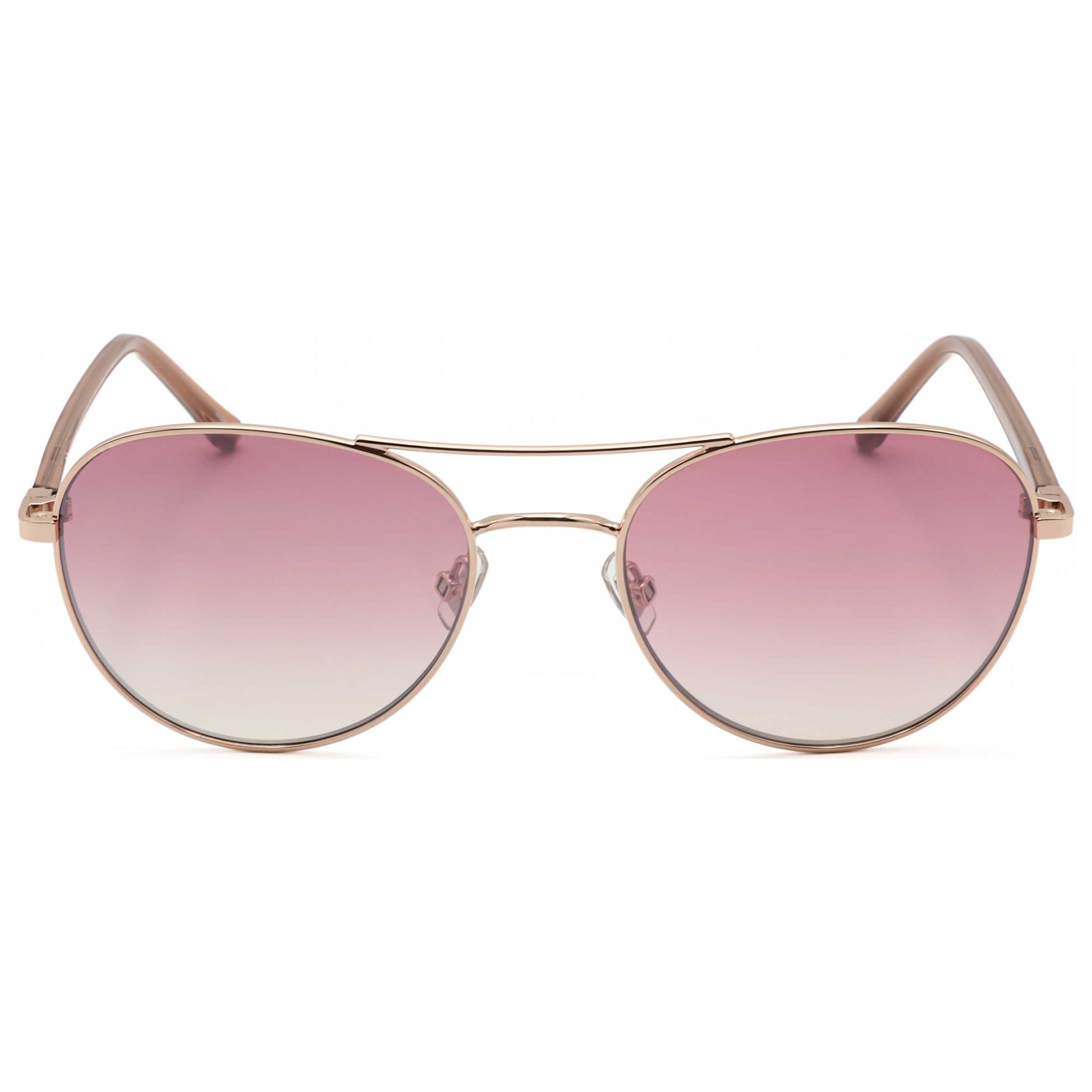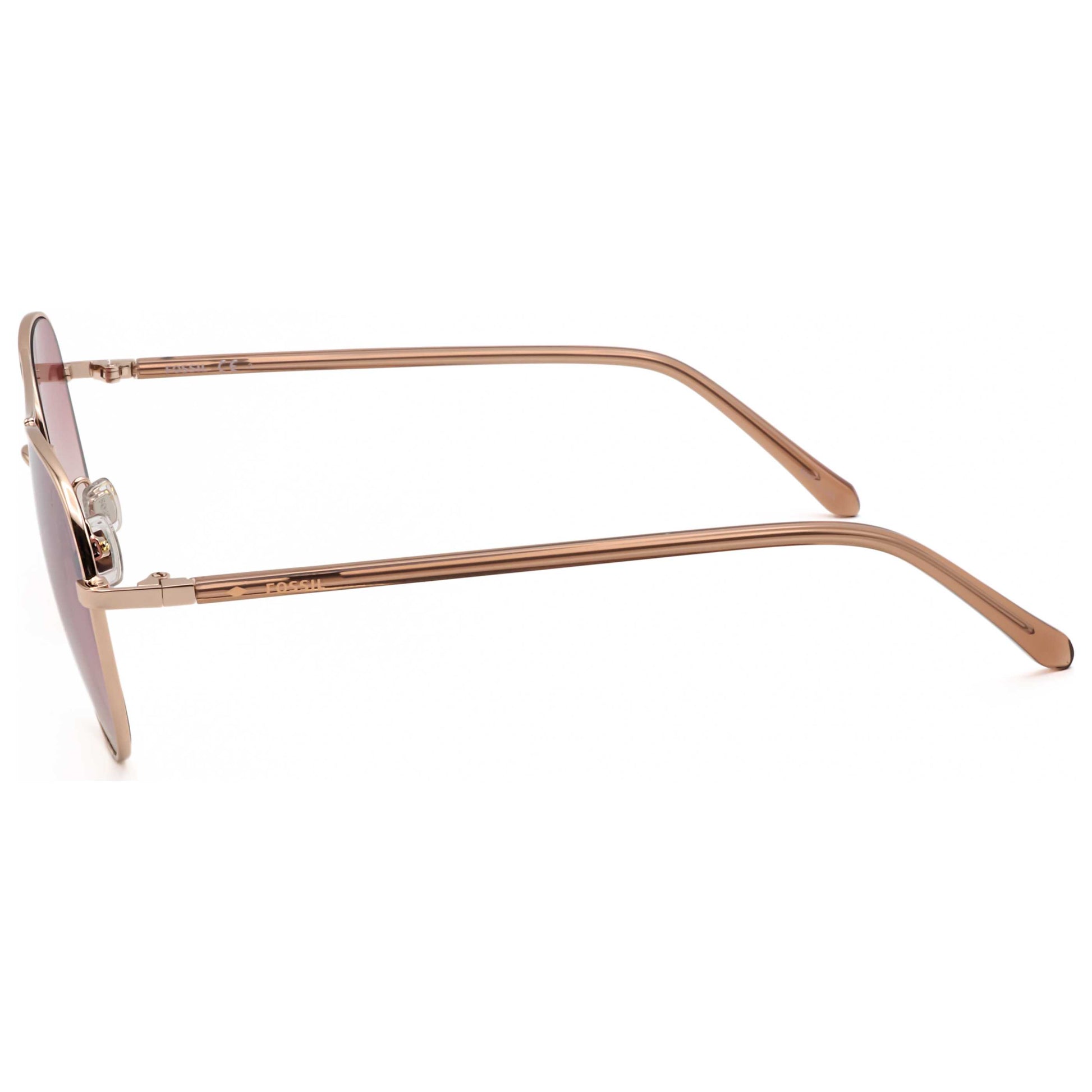 Unleash style and protection with Fossil women's sunglasses, designed in the iconic aviator shape. These red gold frames feature a lens width of 55 mm and pink silver flash lenses that offer 100% UV protection. Perfectly balanced, with a bridge width of 19 mm and arm length of 145 mm, they provide all-day comfort and chic elegance. FOS3123GS-0AU2-2S