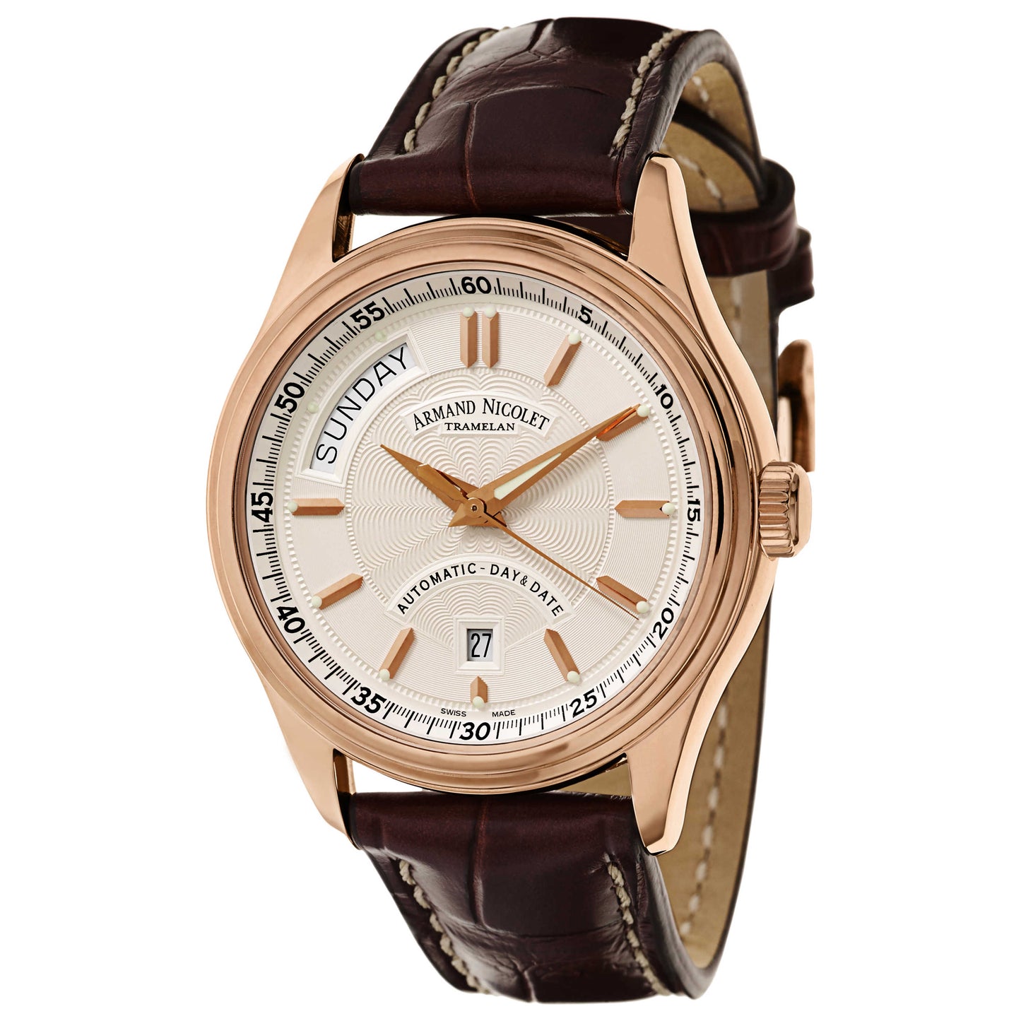 Armand Nicolet, M02, Men's Watch, 18K Rose Gold Case, Leather Alligator Strap, Swiss Mechanical Automatic (Self-Winding), 7141A-AG-P914MR2