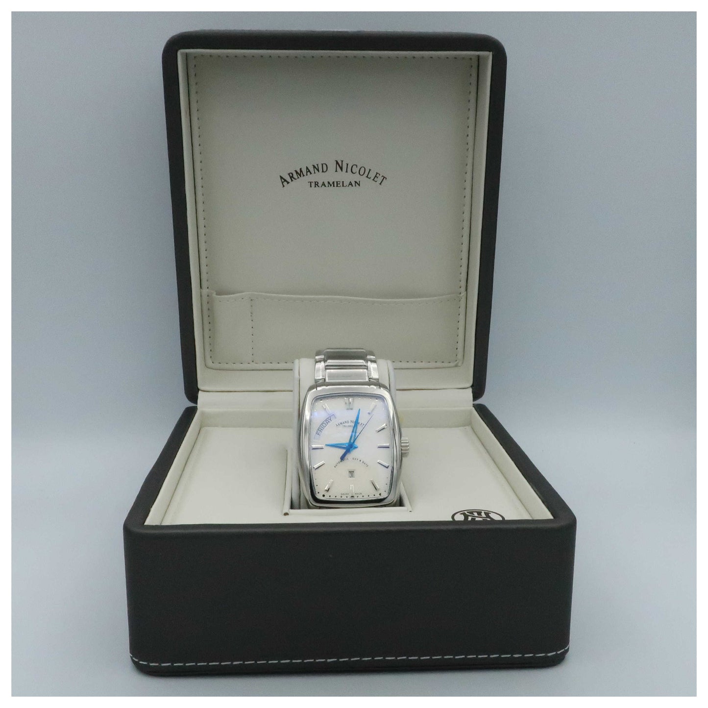 Armand Nicolet, TM7 Day & Date, Men's Watch, Stainless Steel Case, Stainless Steel Bracelet, Swiss Mechanical Automatic (Self-Winding), 9630A-AG-M9630-PO