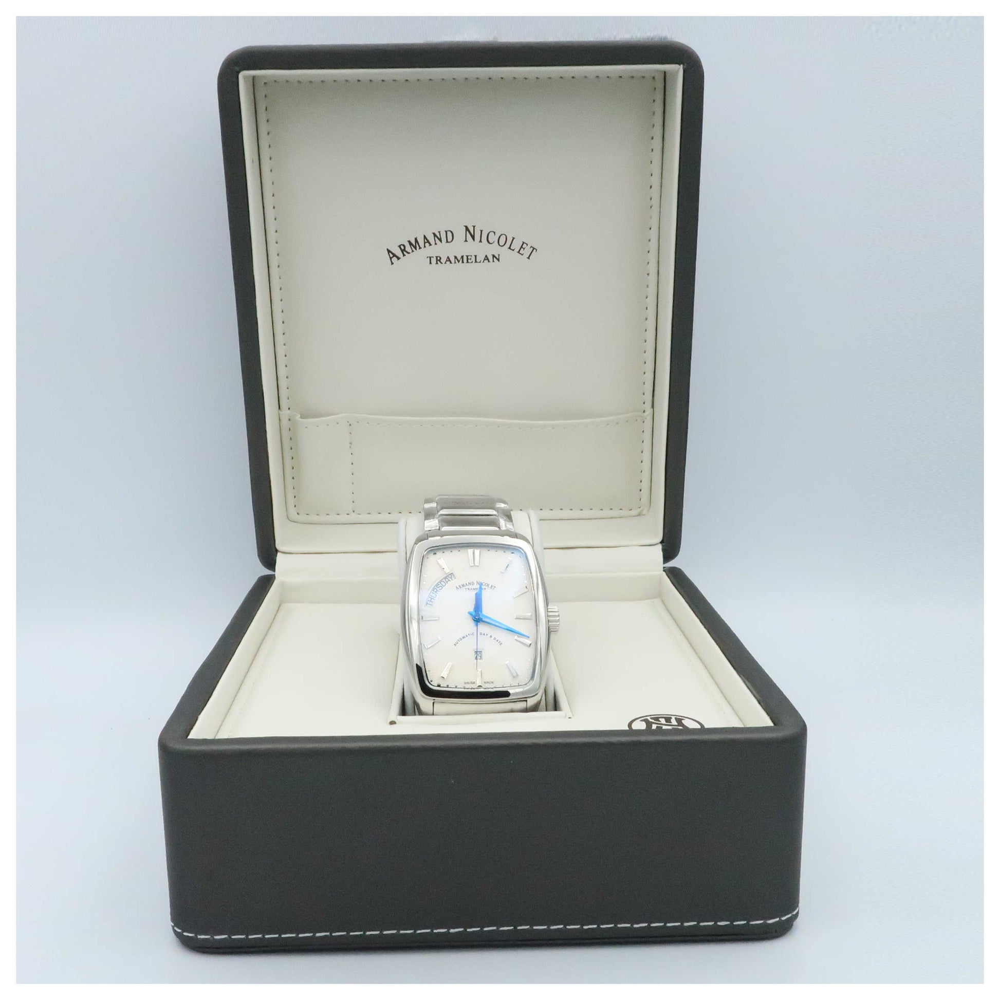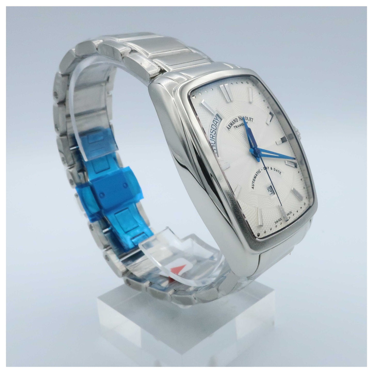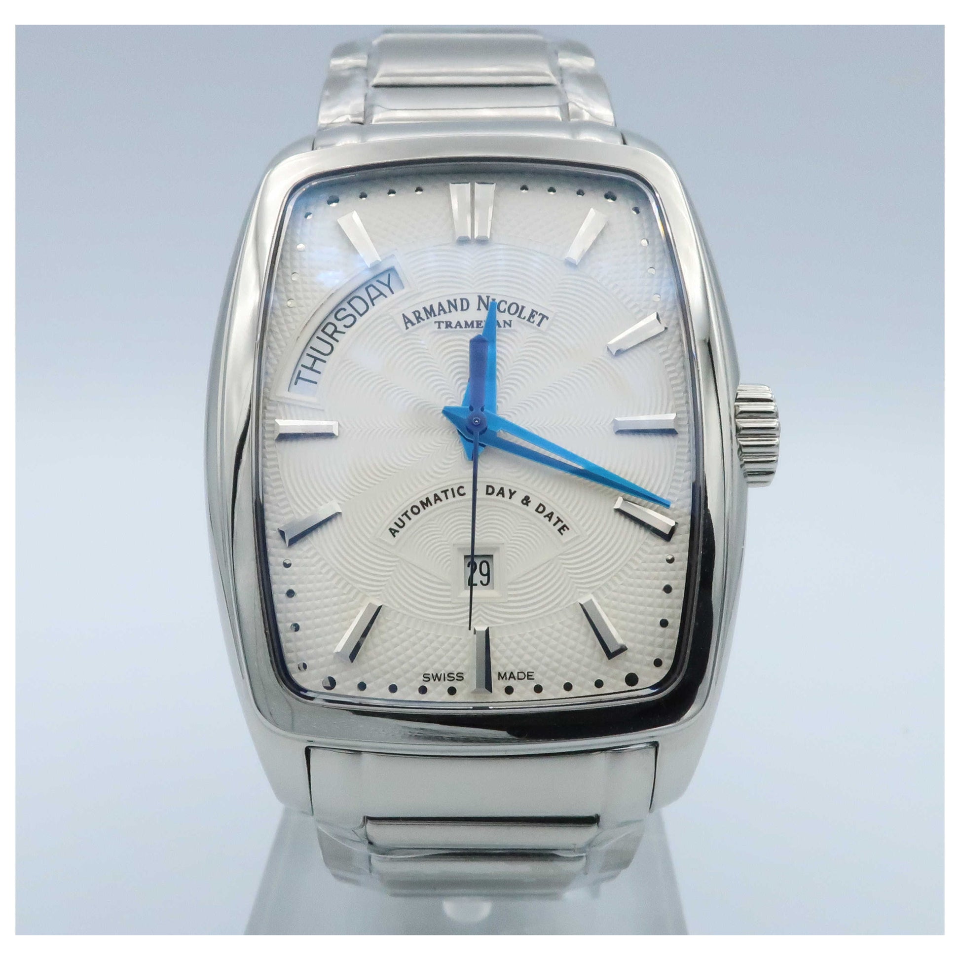 Armand Nicolet, TM7 Day & Date, Men's Watch, Stainless Steel Case, Stainless Steel Bracelet, Swiss Mechanical Automatic (Self-Winding), 9630A-AG-M9630-SD