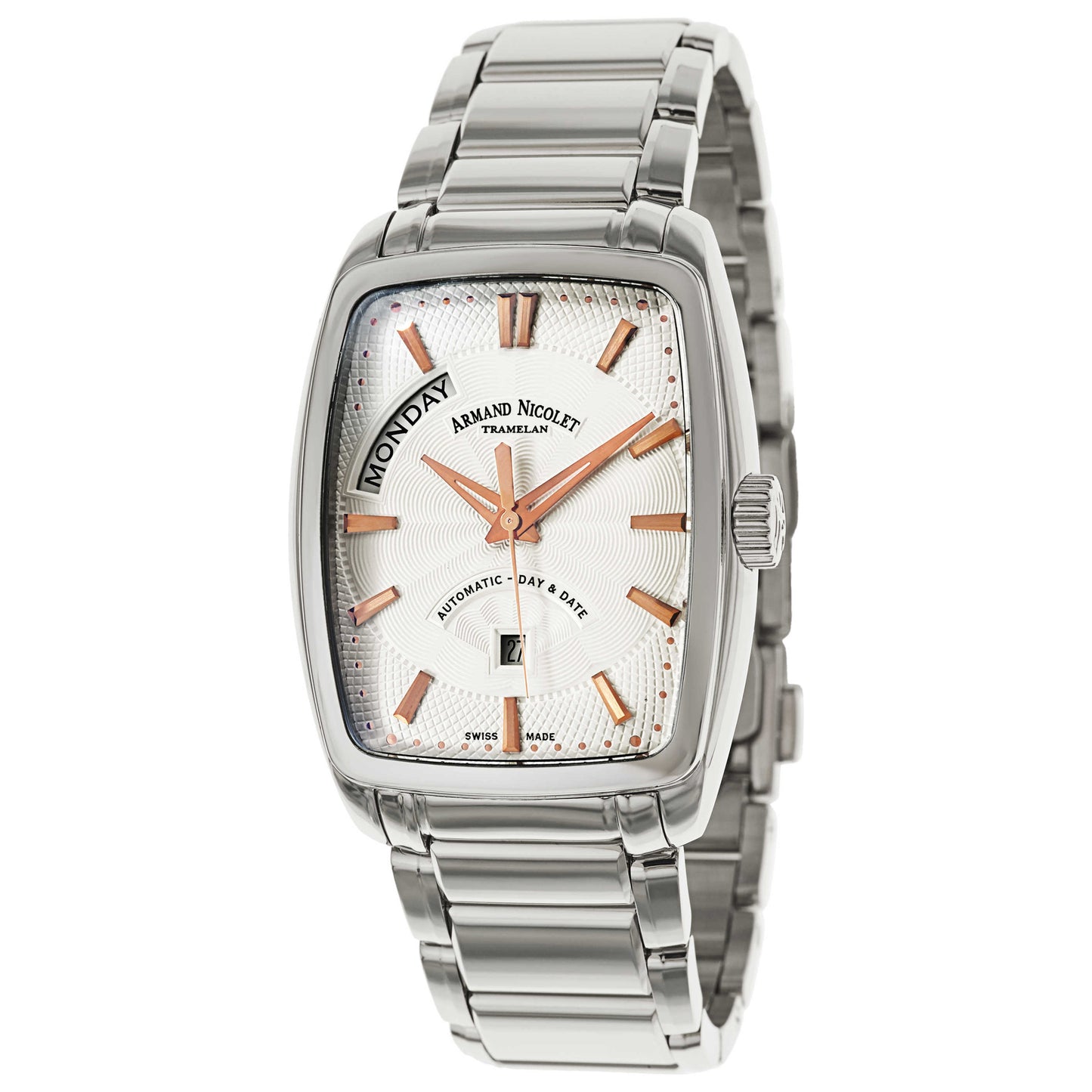 Armand Nicolet, TM7 Day & Date, Men's Watch, Stainless Steel Case, Stainless Steel Bracelet, Swiss Mechanical Automatic (Self-Winding), 9630A-AS-M9630