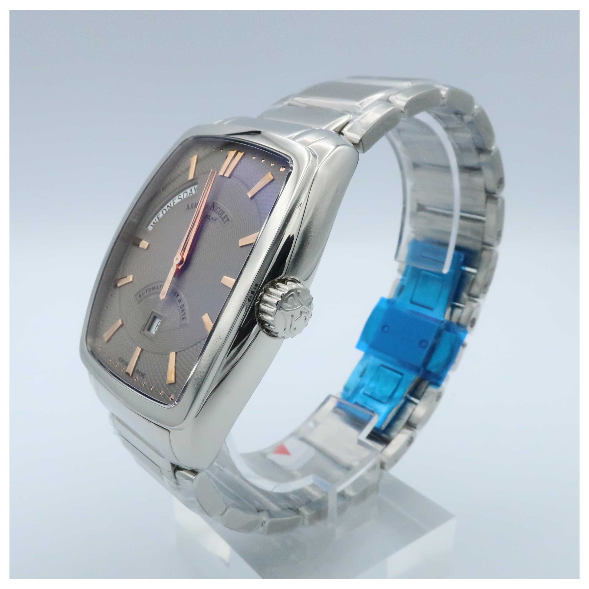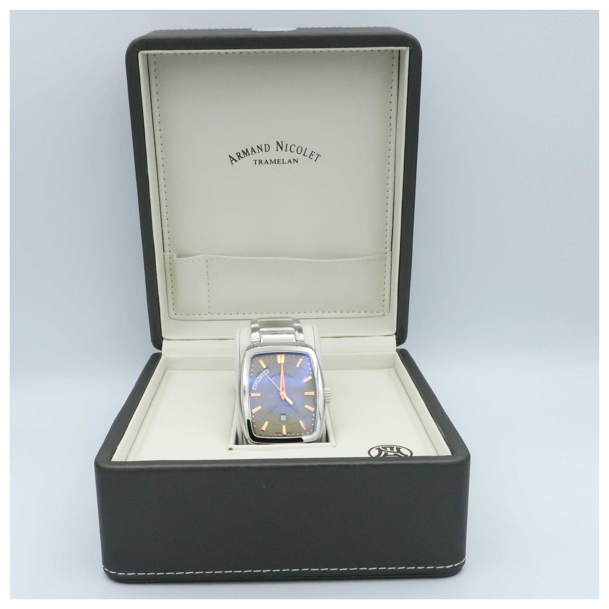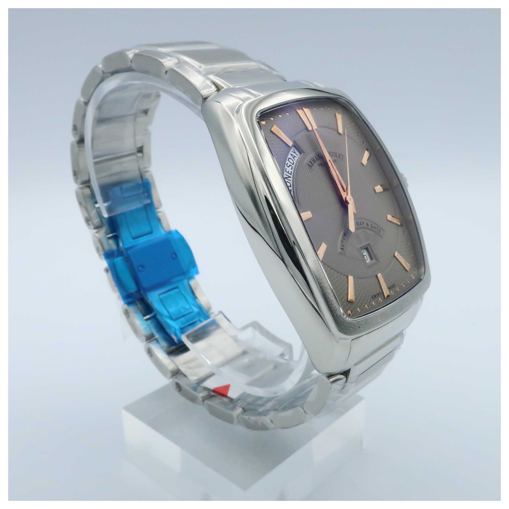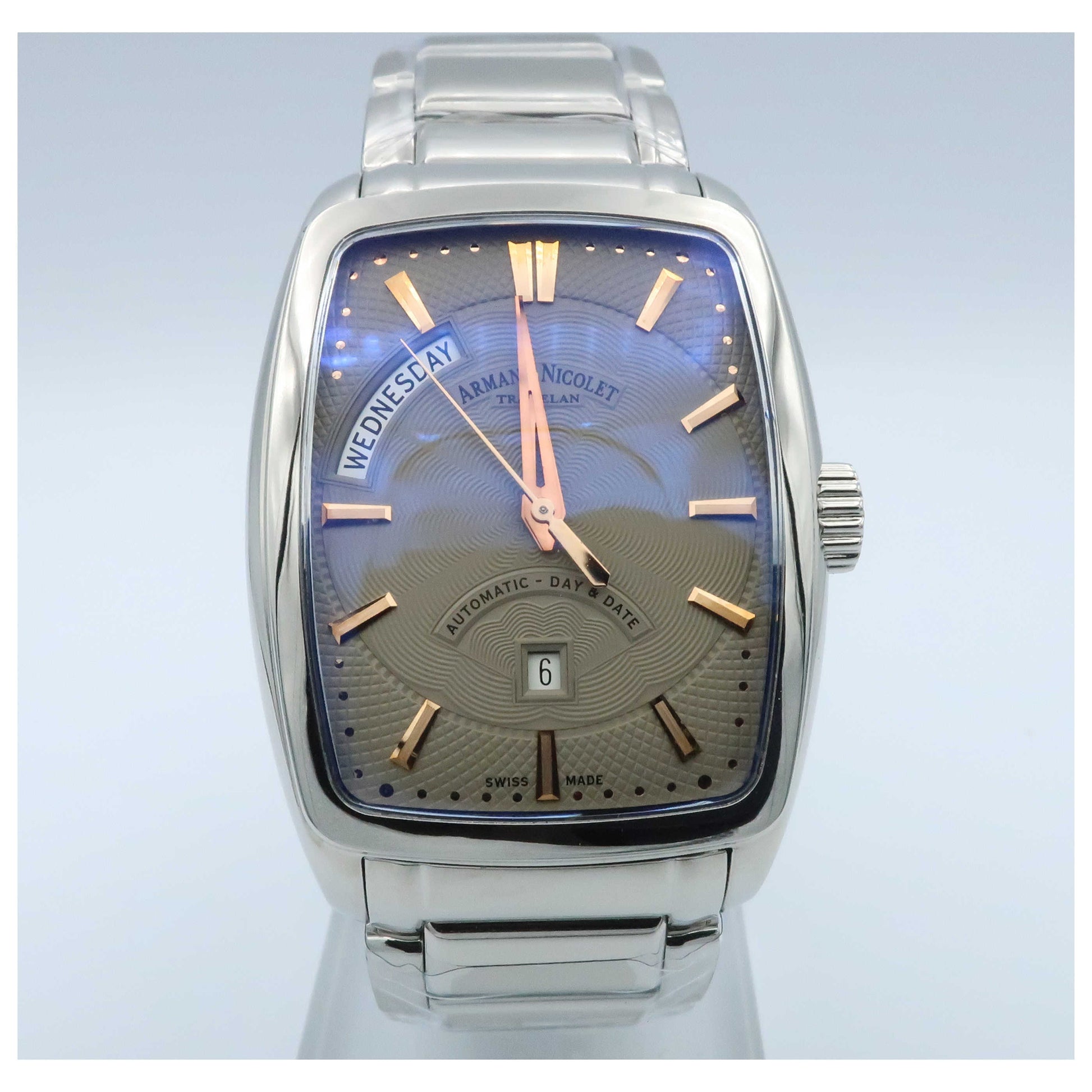 Armand Nicolet, TM7 Day & Date, Men's Watch, Stainless Steel Case, Stainless Steel Bracelet, Swiss Mechanical Automatic (Self-Winding), 9630A-GS-M9630-SD