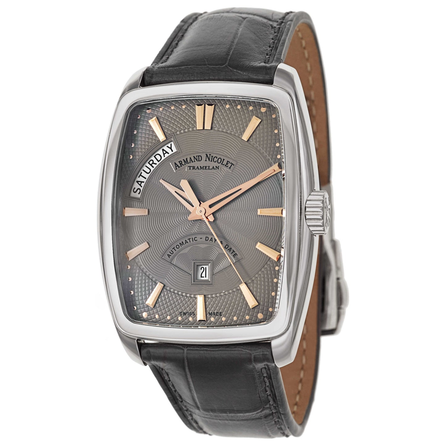 Armand Nicolet, TM7 Day & Date, Men's Watch, Stainless Steel Case, Leather Alligator Strap, Swiss Mechanical Automatic (Self-Winding), 9630A-GS-P968GR3