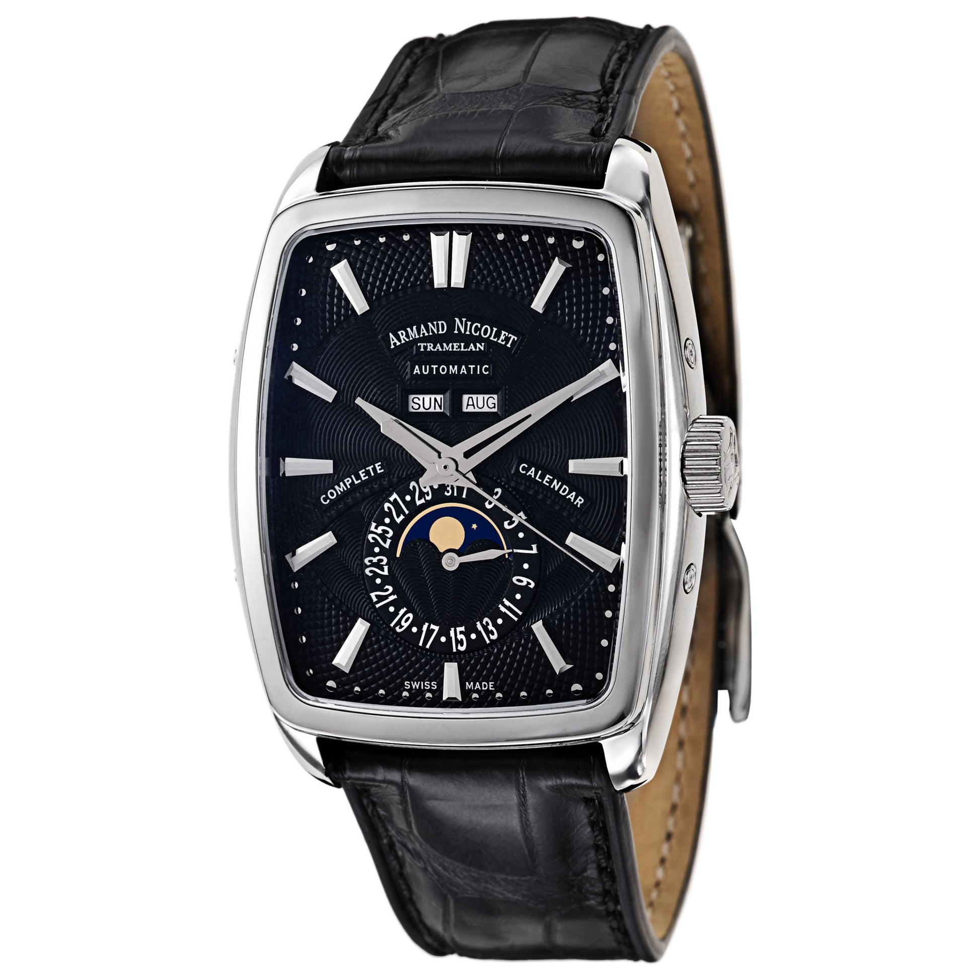 Armand Nicolet, TM7 Complete Calendar, Men's Watch, Stainless Steel Case, Leather Alligator Strap, Automatic, 9632A-NR-P968NR3