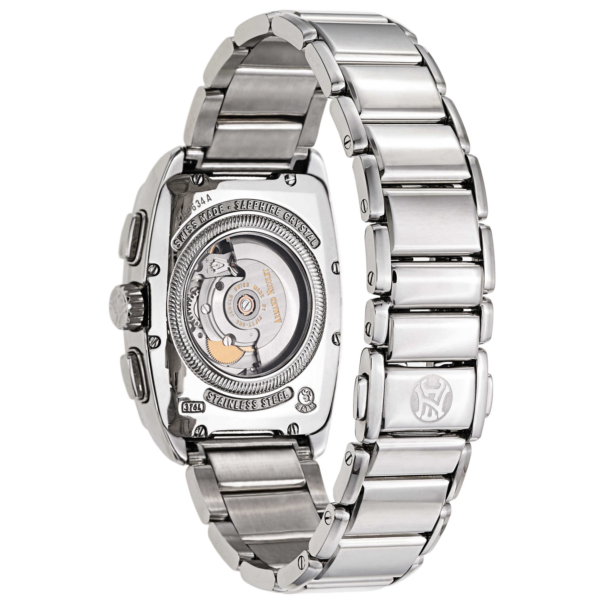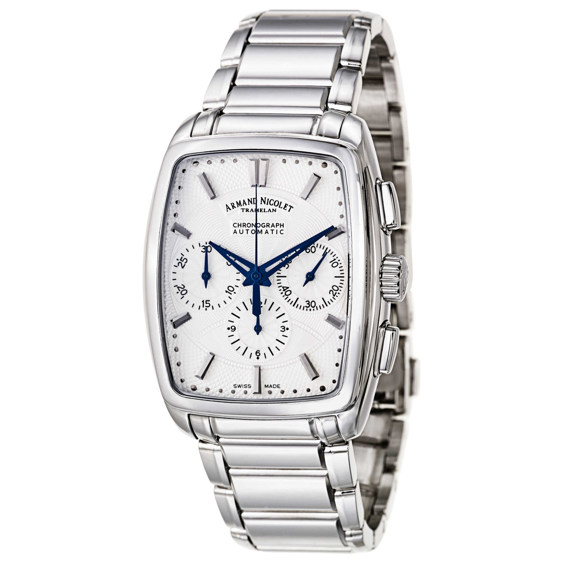Armand Nicolet, TM7 Chronograph, Men's Watch, Stainless Steel Case, Stainless Steel Bracelet, Swiss Mechanical Automatic (Self-Winding), 9634A-AG-M9630