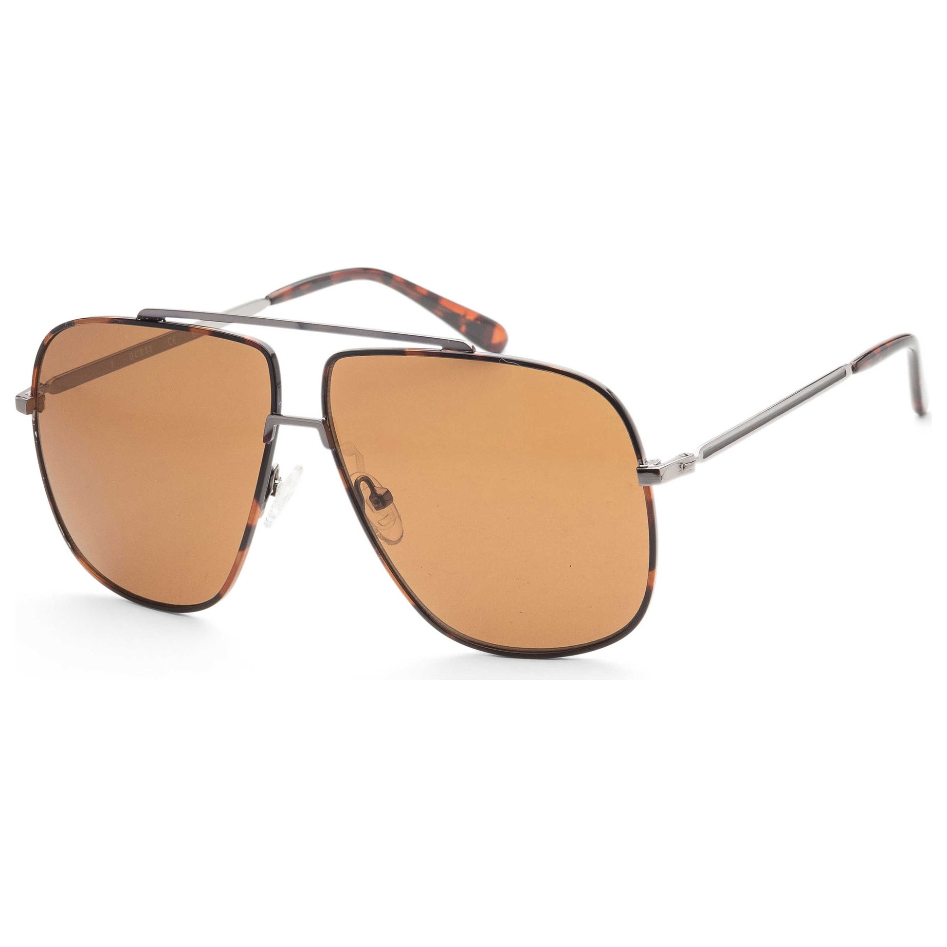 Step into style with these Guess men's sunglasses. Crafted from shiny light ruthenium metal, they feature a lens width of 61 mm and brown lenses offering 100% UV protection. Complete with a 140 mm arm and a 10 mm bridge, these sunglasses combine functionality with a sleek design. GF0239-14E