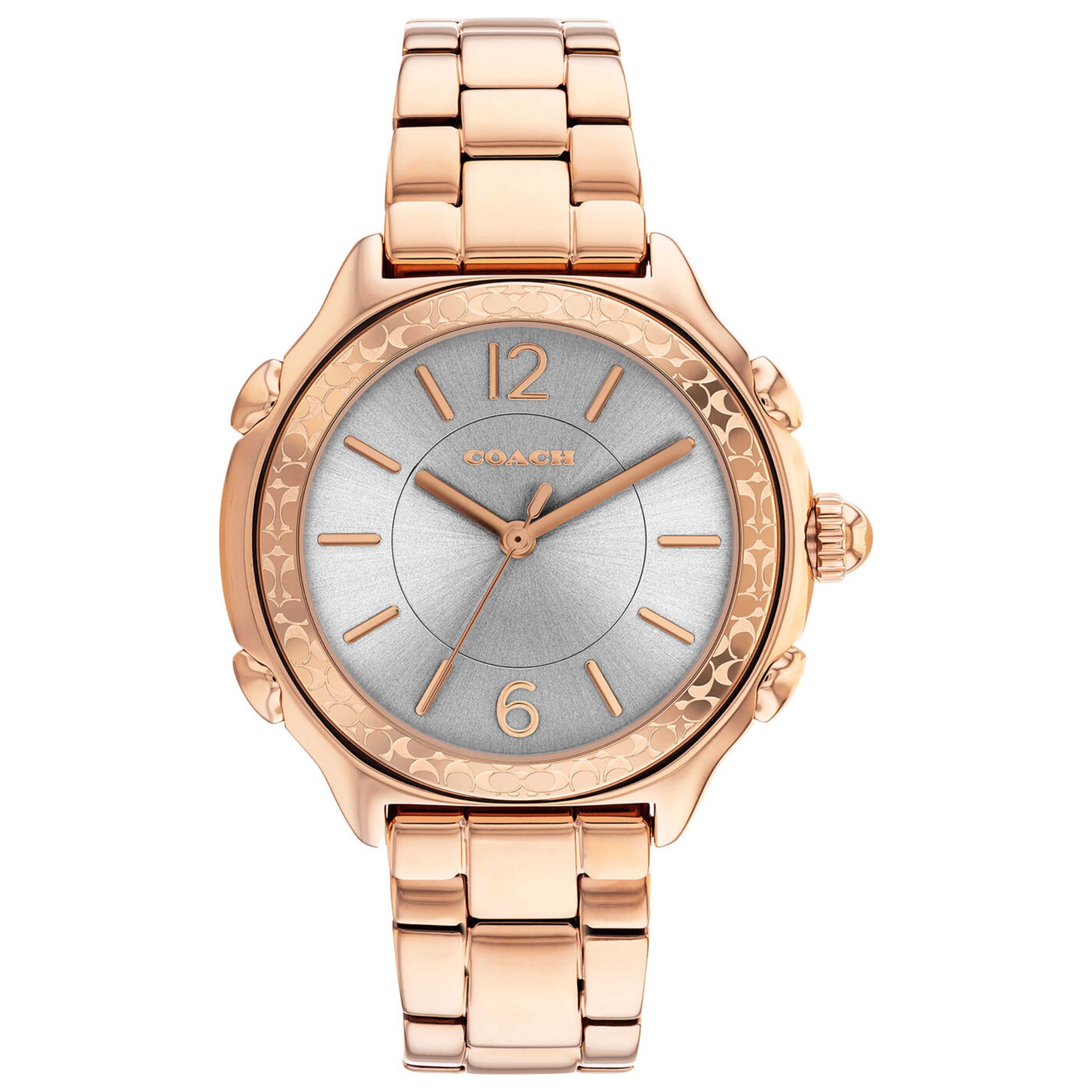 Coach unveils the Suzie Collection, epitomizing elegance for the modern woman. This quartz movement watch features a luxurious gold tone stainless steel case, complemented by a mineral crystal and a chic grey dial. The bracelet, in captivating rose gold with a deployment clasp, encircles the wrist gracefully. Water-resistant up to 30m, the Suzie is not only stylish but also durable, making it the perfect accessory for both special occasions and everyday sophistication. 14503963
