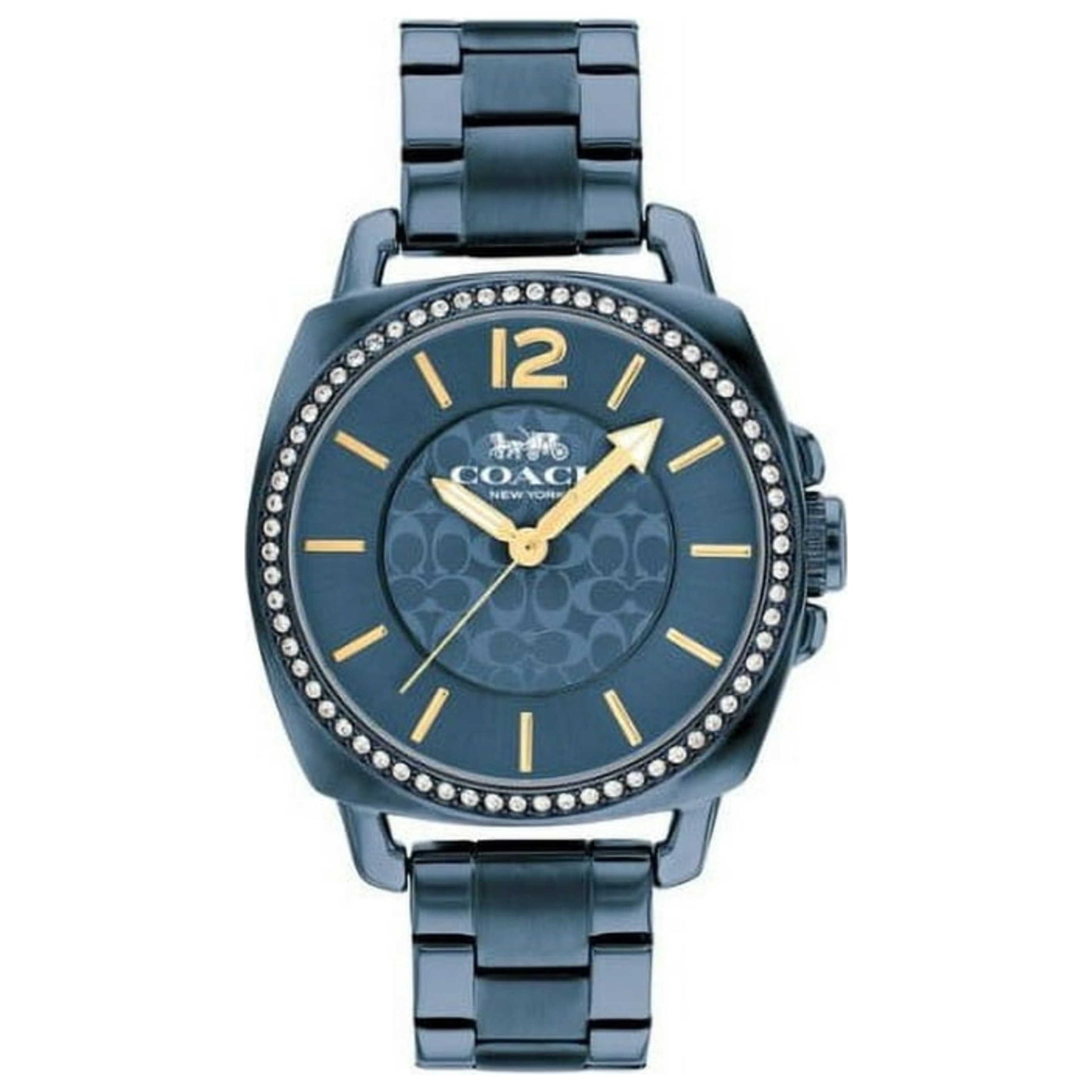 Experience the distinctive allure of the Coach Boyfriend watch, tailored specifically for women. This quartz movement timepiece features a stunning round blue stainless steel case, complemented by a mineral crystal and a matching blue bracelet with a secure deployment clasp. Boasting a 34mm case width and water resistance up to 30 m (100 feet), it combines style with functionality, perfect for daily wear or special occasions. Rediscover timekeeping with a touch of personalized flair. 14503985