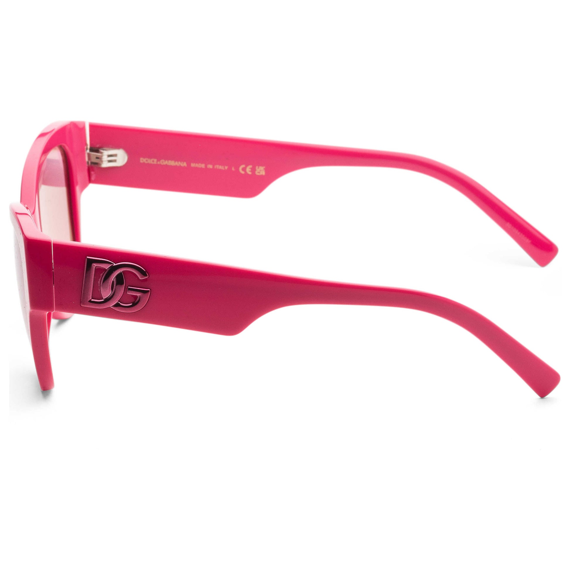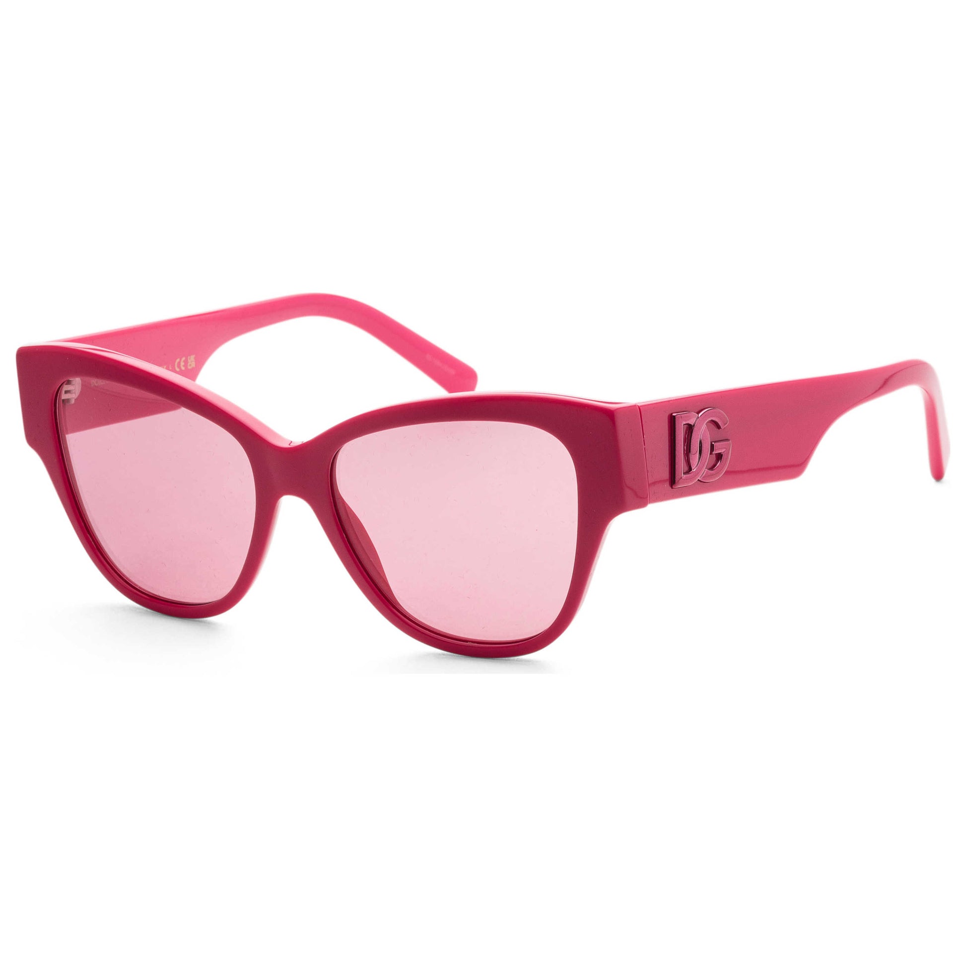 Get ready to stand out in Dolce & Gabbana women's sunglasses. The captivating butterfly frames, crafted from durable fuchsia acetate, complement the eye-catching 54 mm pink mirror internal silver lenses that offer 100% UV protection. Wrap up your look with this Italian-made masterpiece, guaranteeing an exquisite blend of fashion and function. DG4449-326230-54