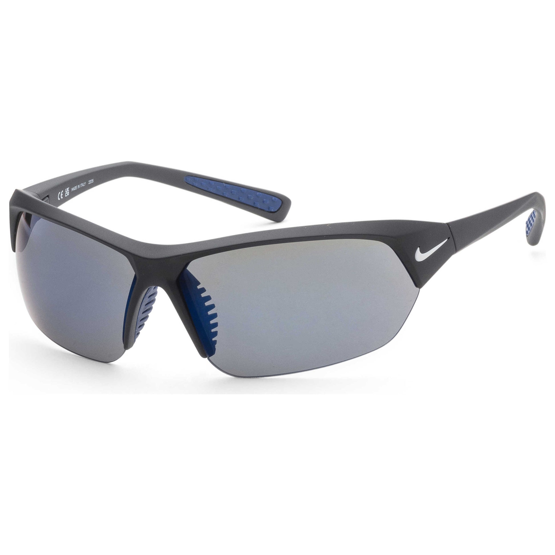 Experience the epitome of sporty elegance with Nike's Skylon Ace men's sunglasses. Crafted in Italy, these sleek, matte black, plastic frames boast a stylish rectangular shape and a lens width of 69 mm. Enjoy enhanced vision and full UV protection with grey blue mirror lenses. Discover the blend of performance and sophistication in Nike's Skylon Ace sunglasses. EV1125-014-69
