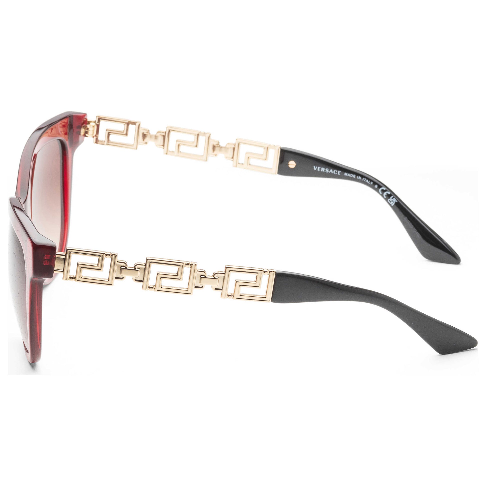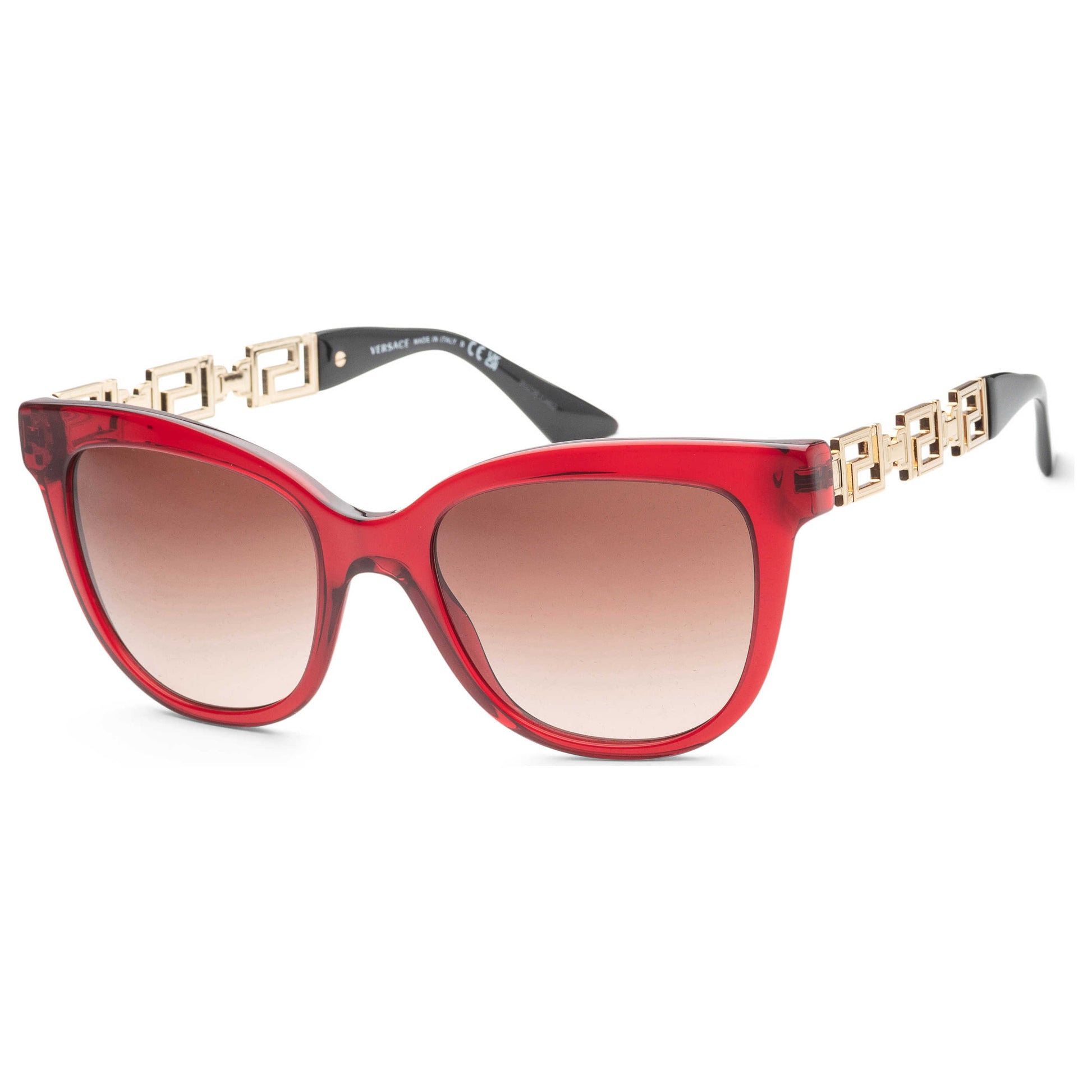 Flaunt your bold style with these Versace women's sunglasses. Featuring a vibrant red acetate cat-eye frame, a 54mm brown lens with 100% UV protection, these Italian-made shades are a statement of sophistication. VE4394-388-13
