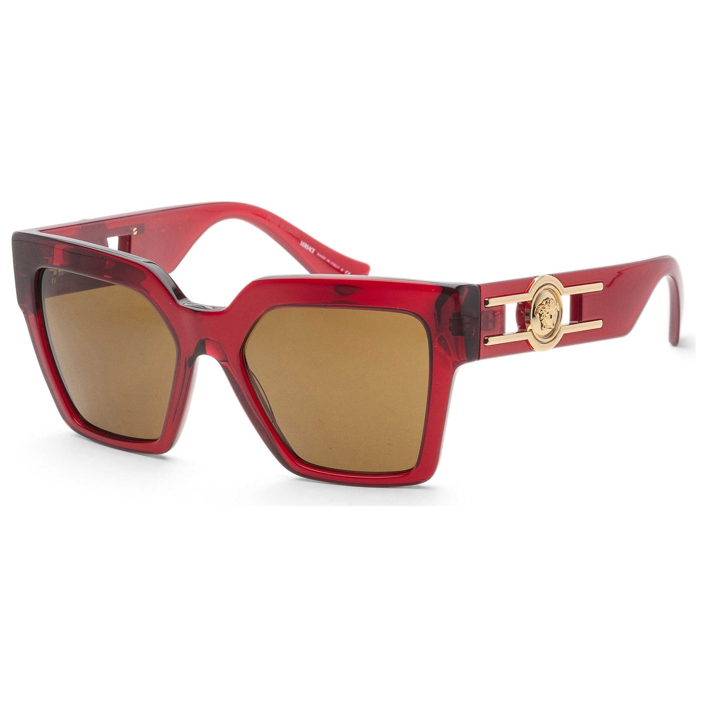 From Versace comes a stunning pair of women's sunglasses, designed with a luxurious Bordeaux acetate frame in a captivating butterfly shape. Measuring 54 mm in lens width, these shades feature dark brown lenses that offer 100% UV protection. Elegant and protective, they're crafted in Italy, combining fashion with function seamlessly. VE4458-543073-54