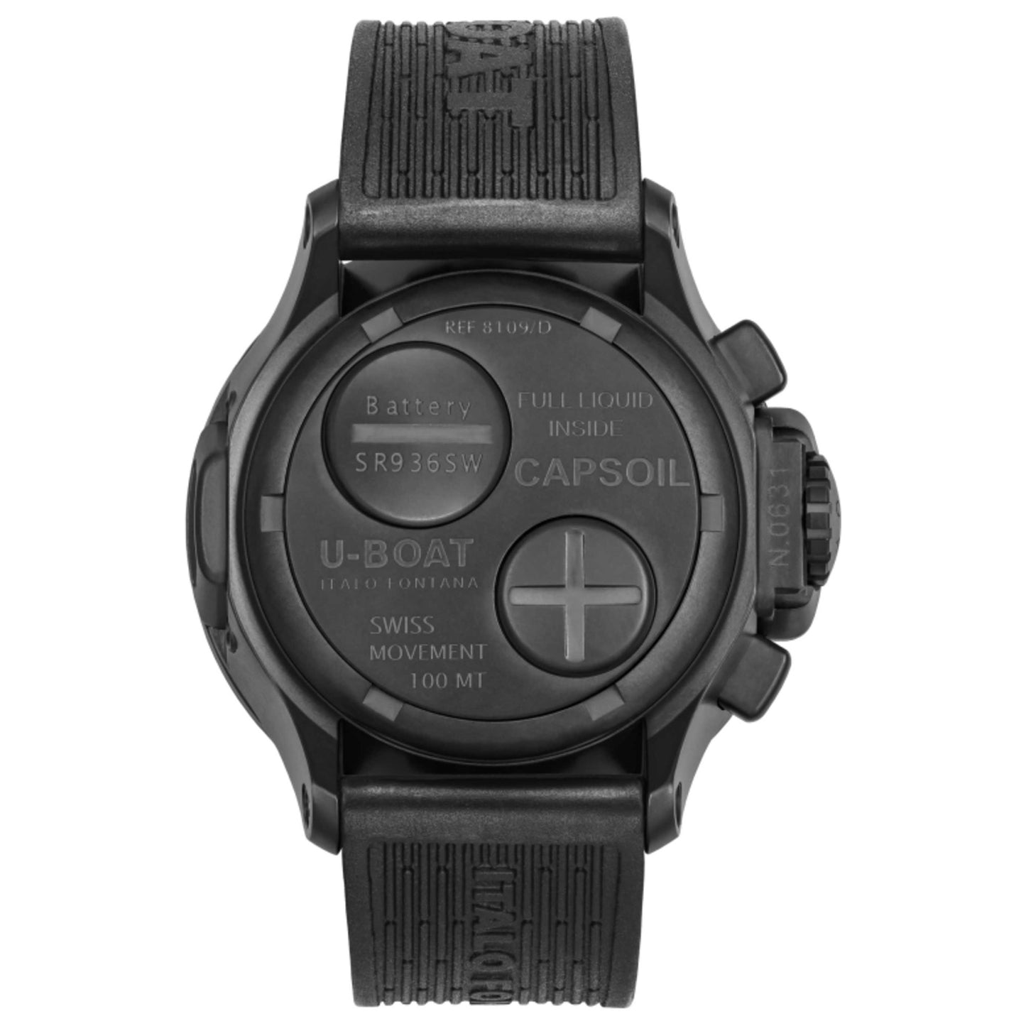 U-Boat, Capsoil, Men's Watch, Stainless Steel and Black PVD Coated Case, Rubber Strap, Automatic, UB-8109-D