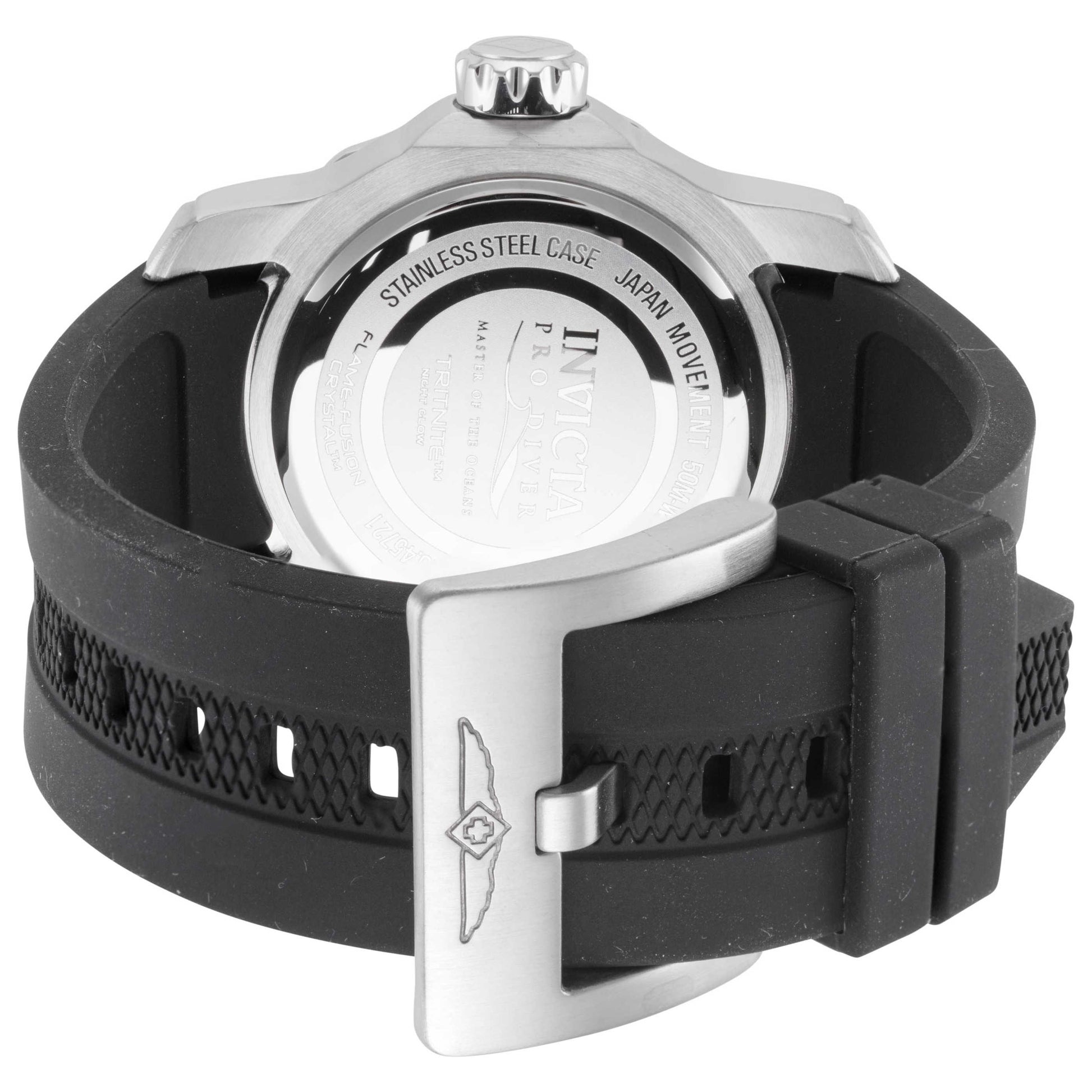 Indulge in timeless style with Invicta's men's Pro Diver watch, a sophisticated timepiece featuring a robust stainless steel round case. This exquisite watch, crafted with care in Japan, flaunts a striking black dial accentuated by a flame-fusion crystal. Driven by a precise quartz movement (TMI VH63), it offers both chronograph functionality and a date feature. This wristwatch's black silicone band secures comfortably with a pin buckle, while a water resistance of 100m ensures reliability during aquatic adventures. The Pro Diver, your key to experiencing unmatched elegance and functionality. IN-45721