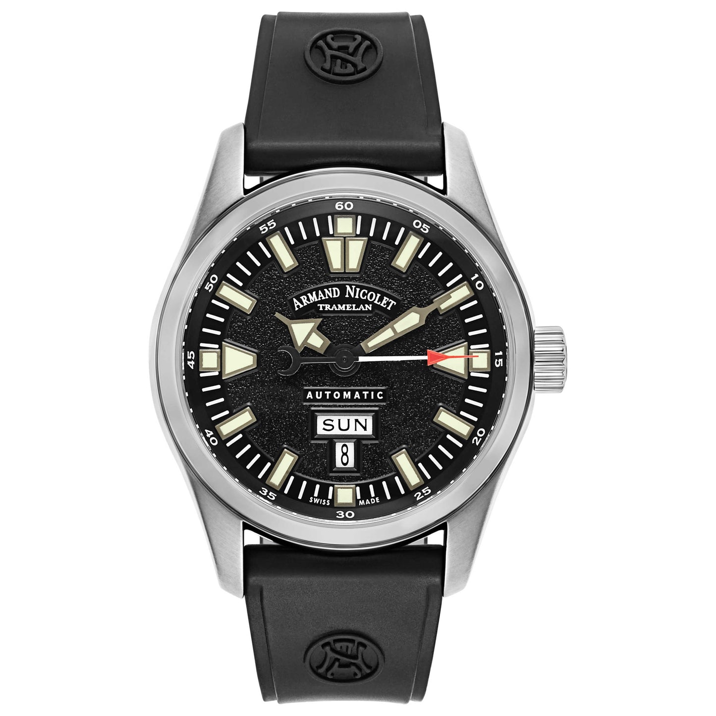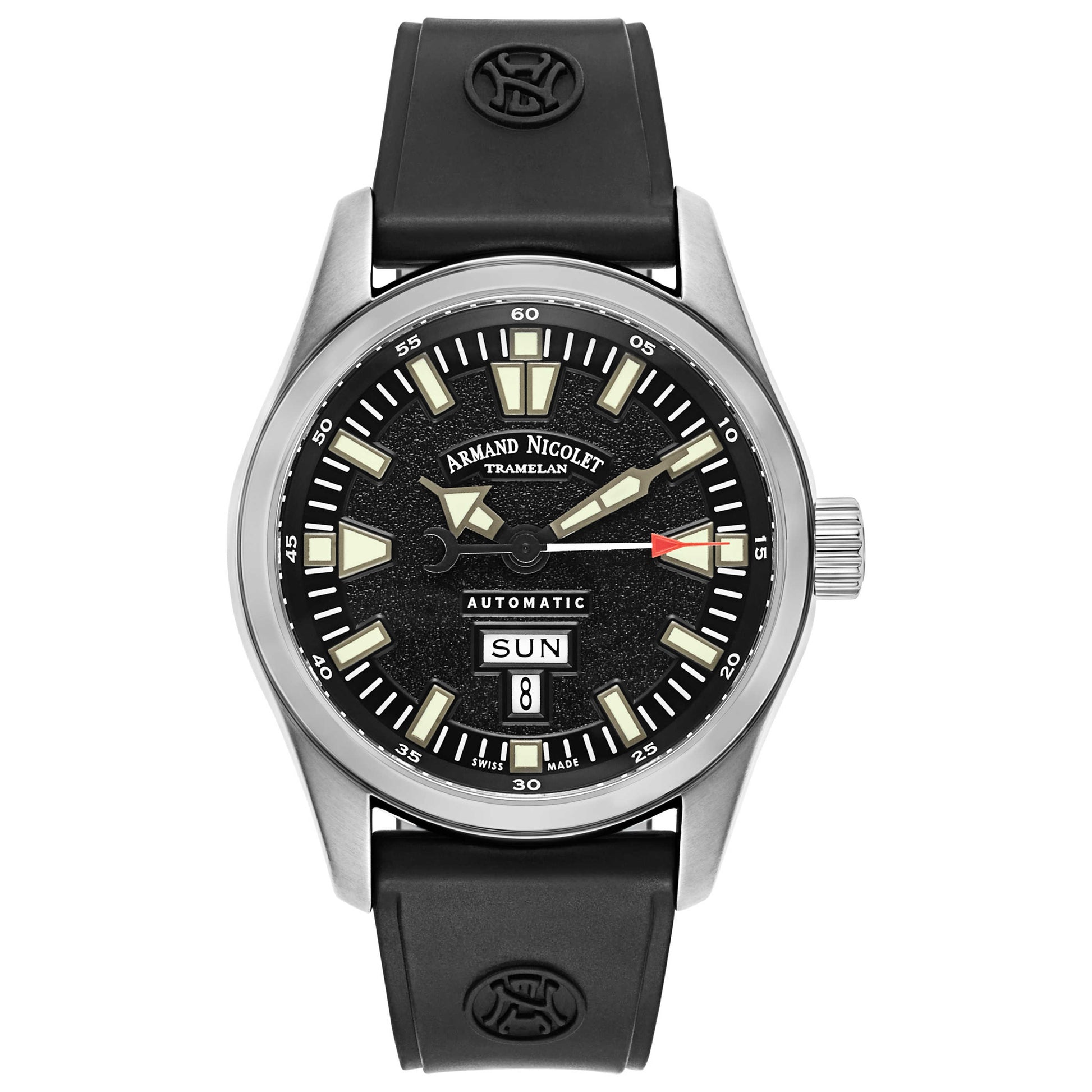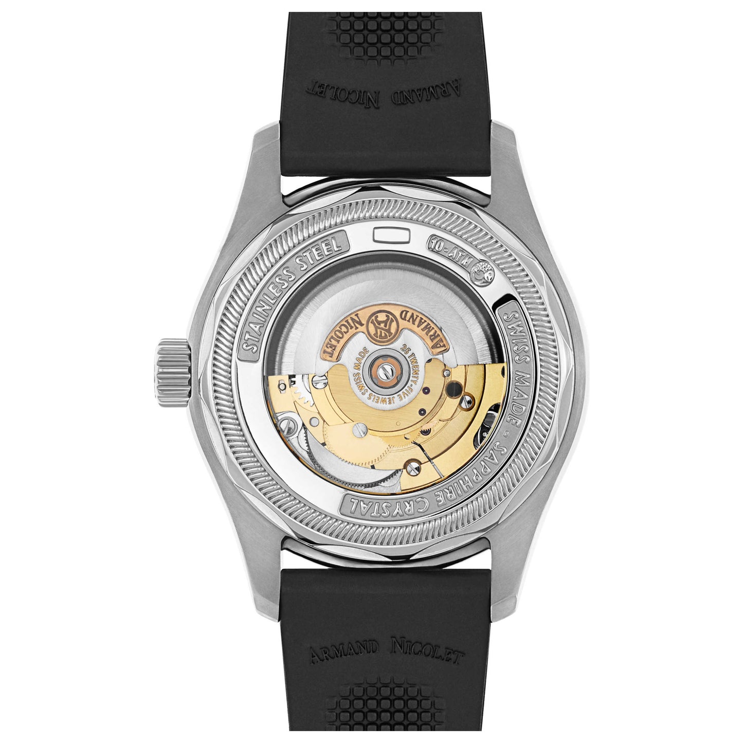 Armand Nicolet, M02, Men's Watch, Stainless Steel Case, Rubber Strap, Swiss Mechanical Automatic (Self-Winding), 9640M-NR-G9660