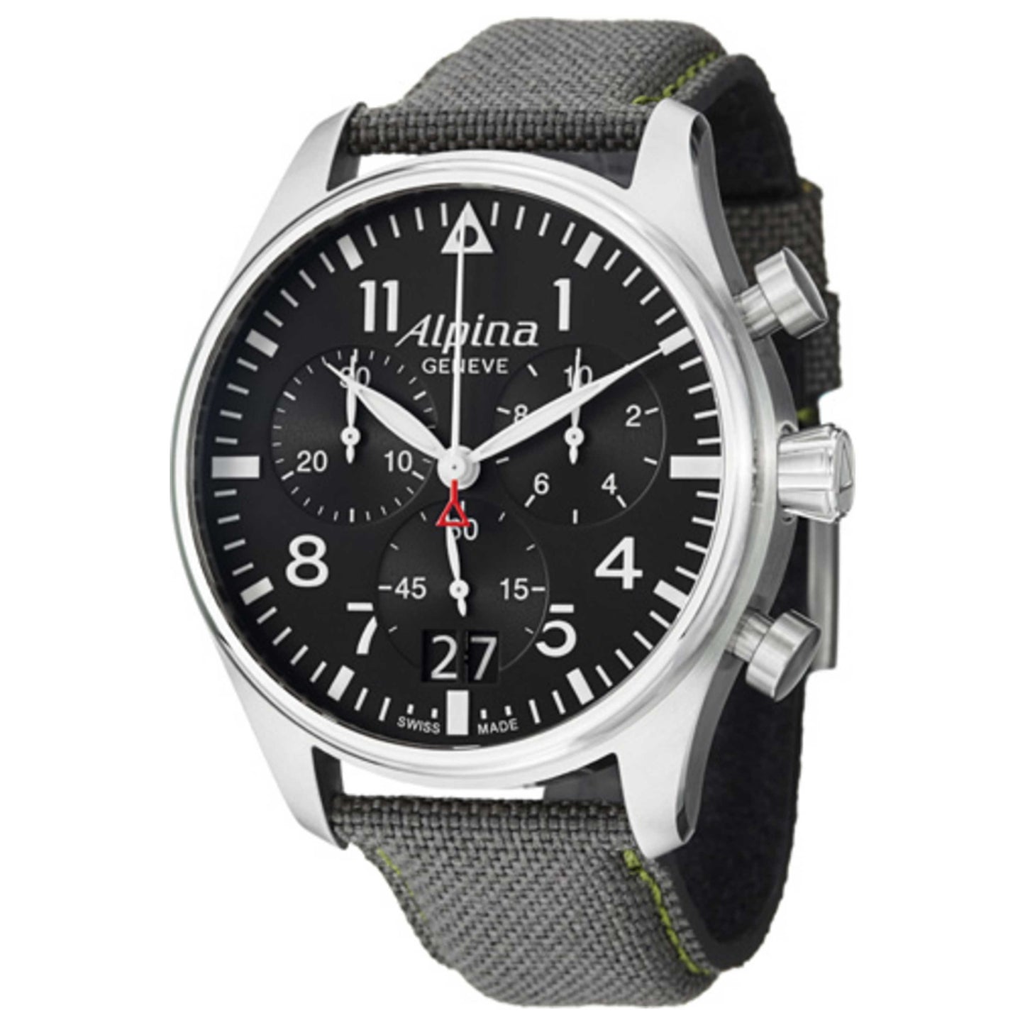 Alpina, Startimer Pilot, Men's Watch, Stainless Steel Case, Canvas Strap, Quartz, AL372B4S6