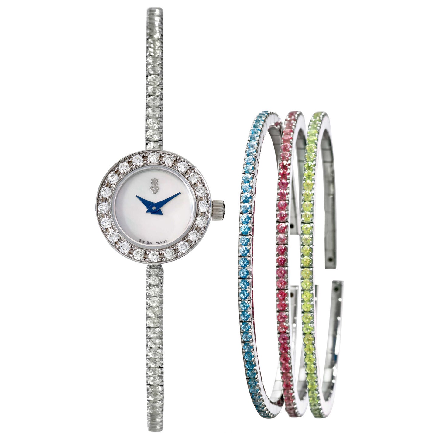 Corum, Romantic Debutante, Women's Watch, Stainless Steel Case, Stainless Steel and Gemstones Bracelet Interchangeable, Swiss Quartz (Battery-Powered), 137-501-47-SETB-PN34