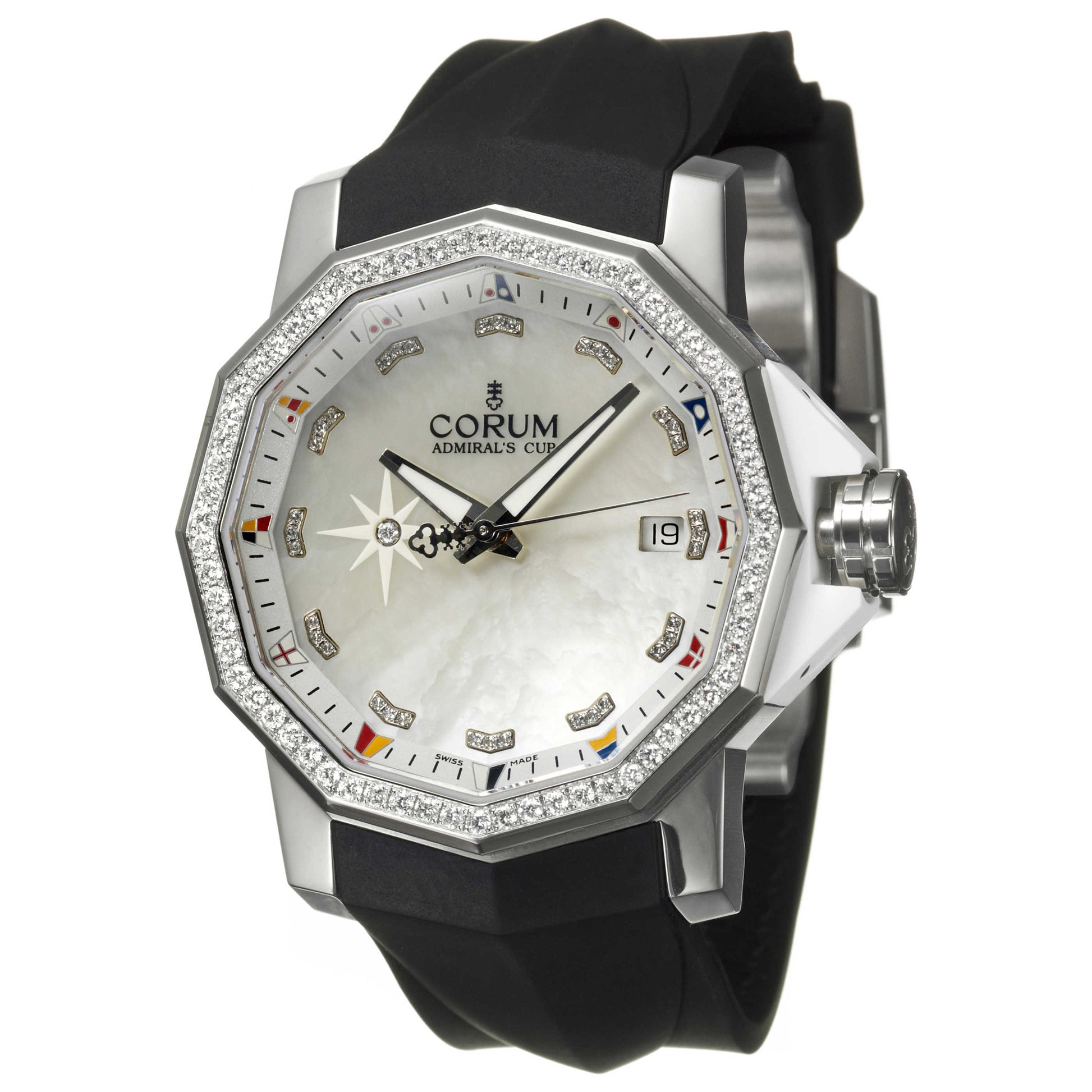 Corum, Admiral's Cup, Men's Watch, Stainless Steel Case, Rubber Strap, Mechanical Automatic Self-Winding Movement Swiss Made, 082-961-47-F371-PN14