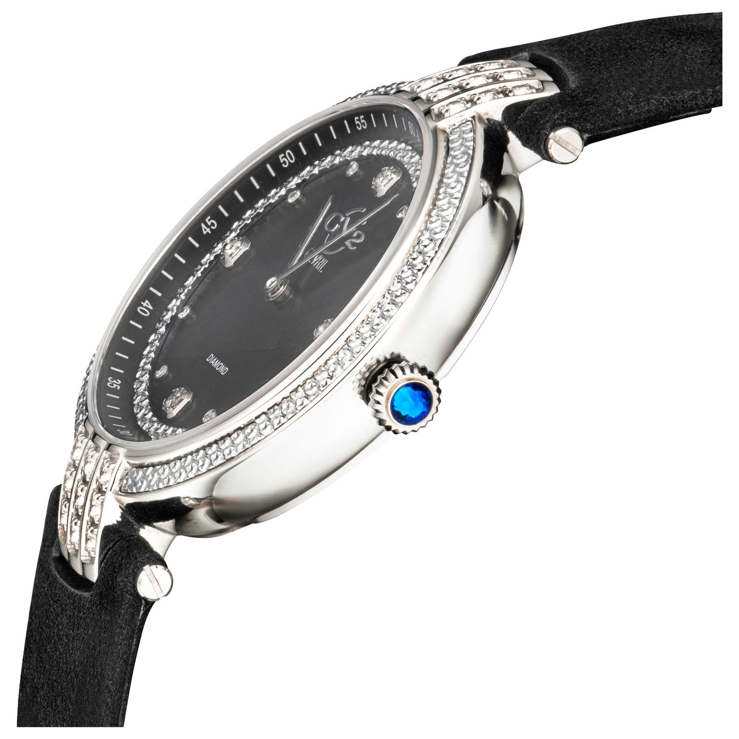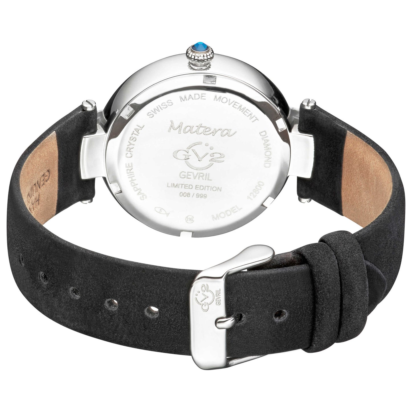 Embrace timeless elegance with the GV2 by Gevril Matera watch, designed exclusively for women who appreciate quality and style. Swiss-made with a reliable quartz movement, this remarkable timepiece features a round 35mm stainless steel case, enclosing a captivating black mother-of-pearl dial. Thanks to its pull and push crown, managing time is a breeze. The scratch-resistant sapphire crystal and water resistance of up to 50m ensure durability. Elegantly attached to a black leather strap that secures with a pin buckle, it offers a seamless blend of luxury and comfort. Made in Switzerland, this watch exudes sophistication and superior craftsmanship. 12800