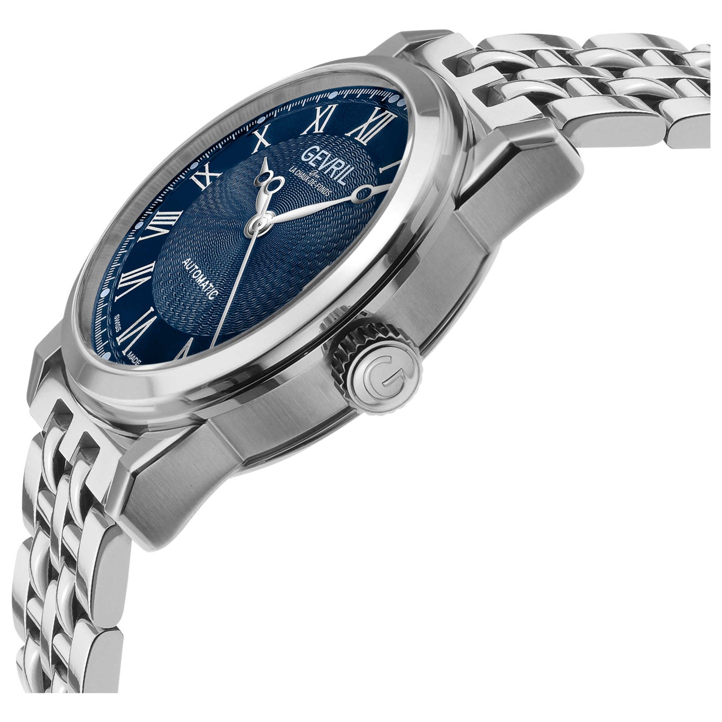 Gevril presents the Madison Collection, tailored for the modern man who values classic elegance and superior craftsmanship. This Swiss-Made automatic watch boasts a round stainless steel case with a scratch-resistant sapphire crystal anti-reflective cover, and a striking blue dial with a date feature. Encased in a 39mm diameter and water-resistant up to 50m, it complements any wardrobe with its silver stainless steel bracelet secured by a deployment clasp. Experience timeless sophistication with every wear. 2578