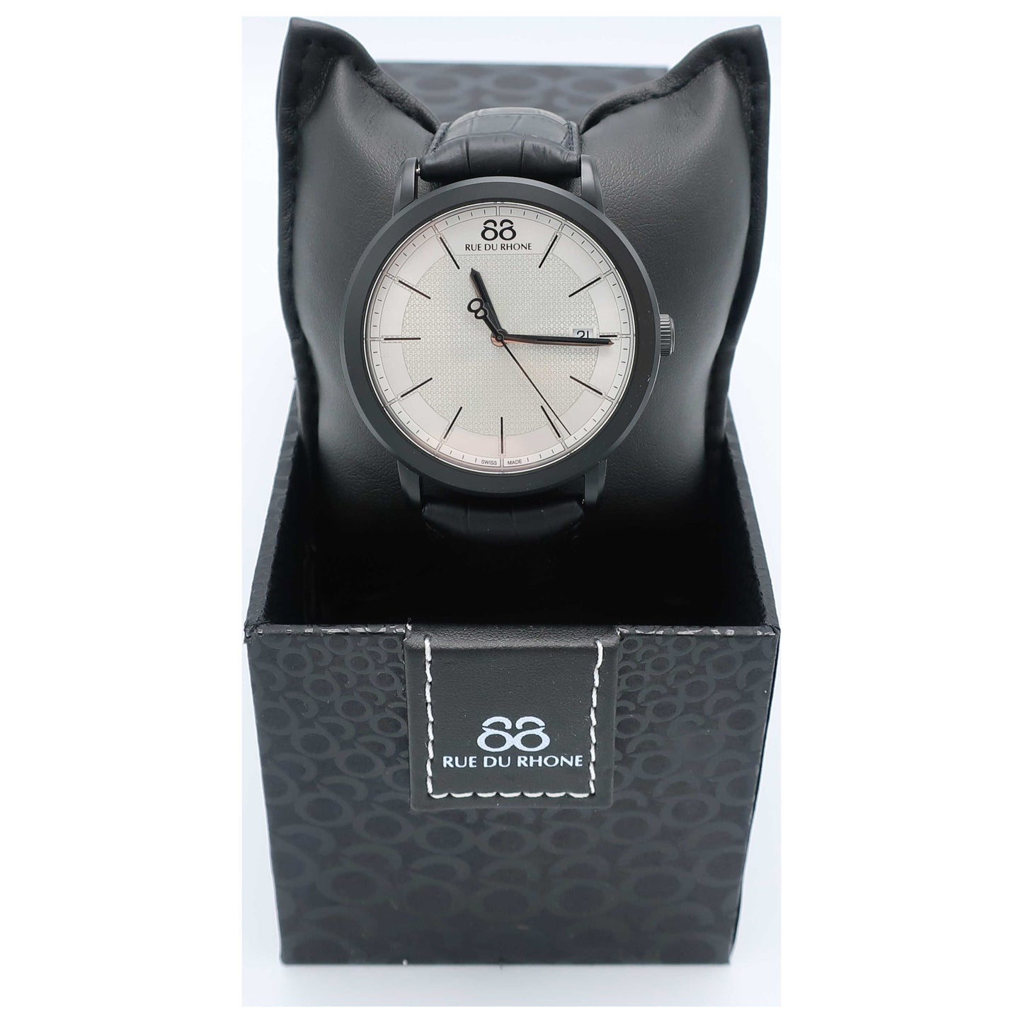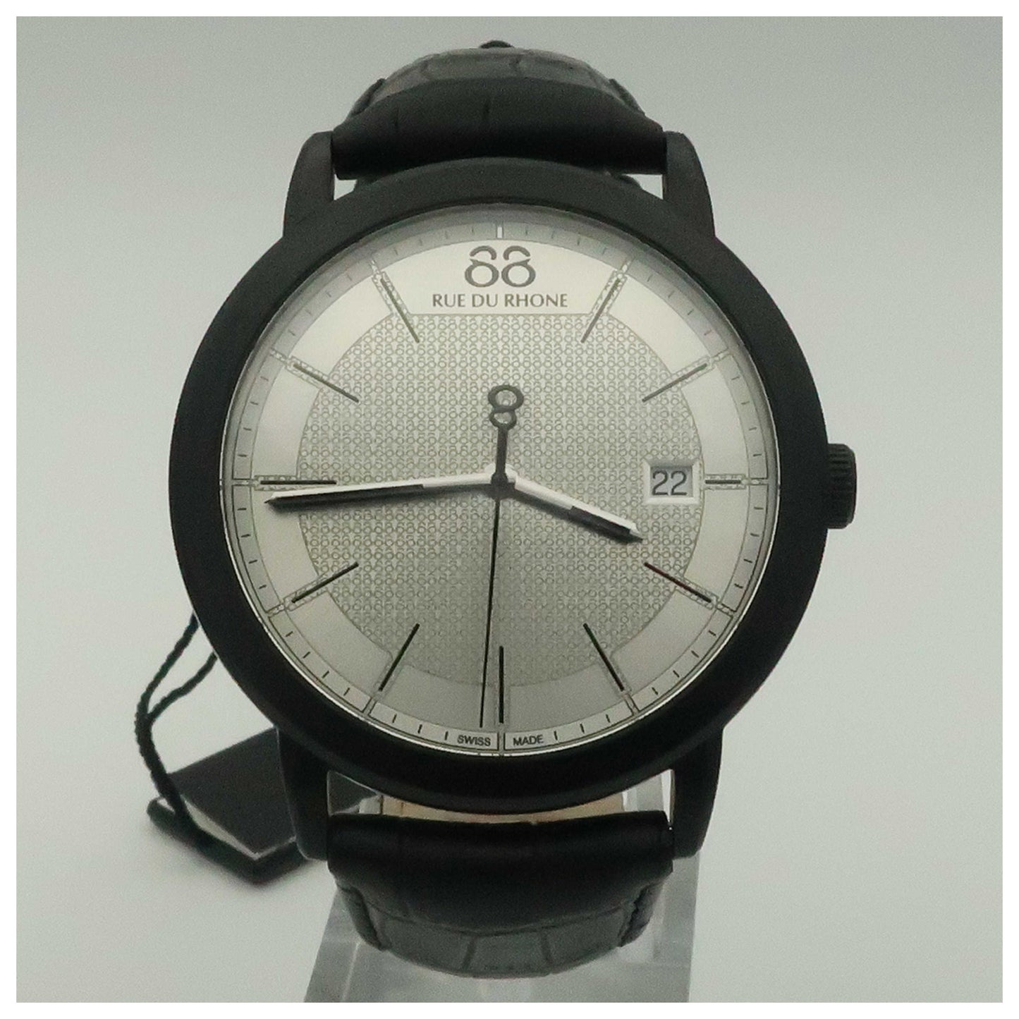 88 RUE DU RHONE, Double 8 Origin, Men's Watch, Stainless Steel and Black Ion Plated Case, Leather Strap, Swiss Quartz (Battery-Powered), 87WA130020-SD