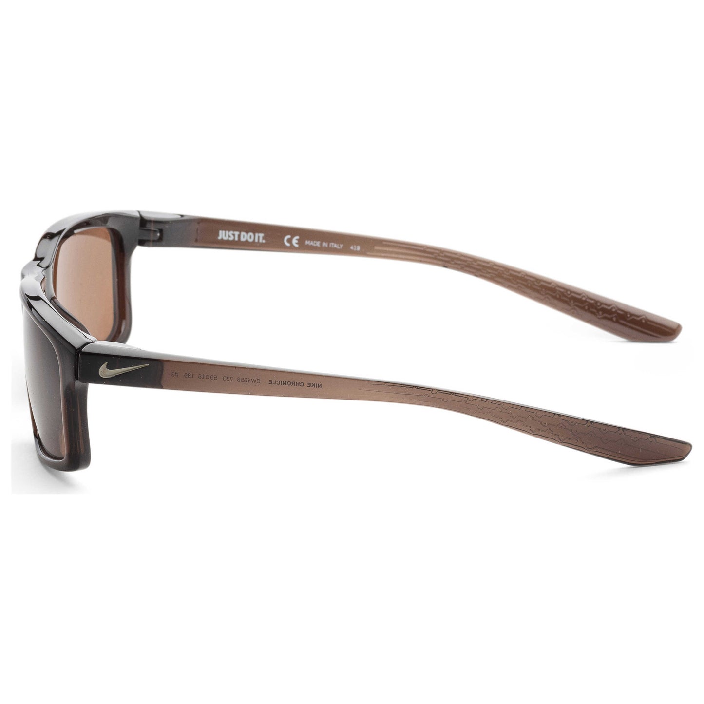 Introducing Nike's Chronicle men's sunglasses, a fusion of style and function. Crafted in Italy, these sunglasses boast a velveteen brown plastic frame in a sleek rectangular shape, paired with brown lenses offering 100% UV protection. With a lens width of 59mm, experience the perfect balance of comfort and premium style. CW4656-220