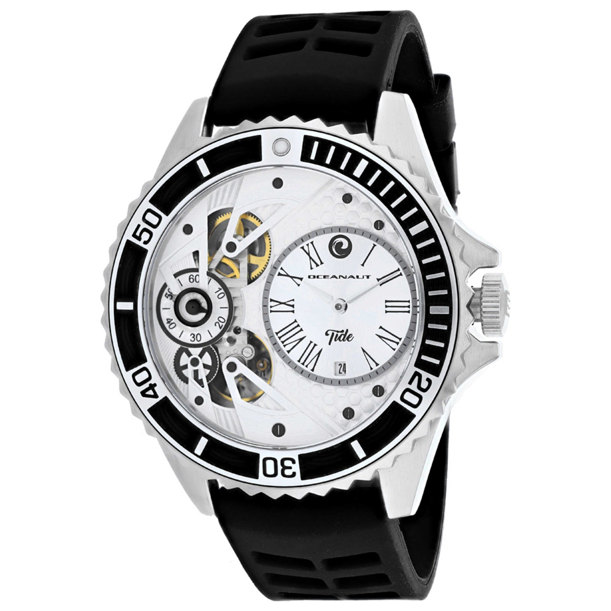 Embrace the Oceanaut's Tide collection, a robust watch for the modern man. This quartz movement men's timepiece features a round 48mm stainless steel case with a silver dial encased in a mineral crystal. Its screw-down crown ensures precision time adjustment while the 100m water resistance capability offers uncompromised functionality. The black rubber strap adds a sporty contrast and provides a secure fit with its pin buckle clasp. Invest in this sophisticated blend of durability and style. OC0990