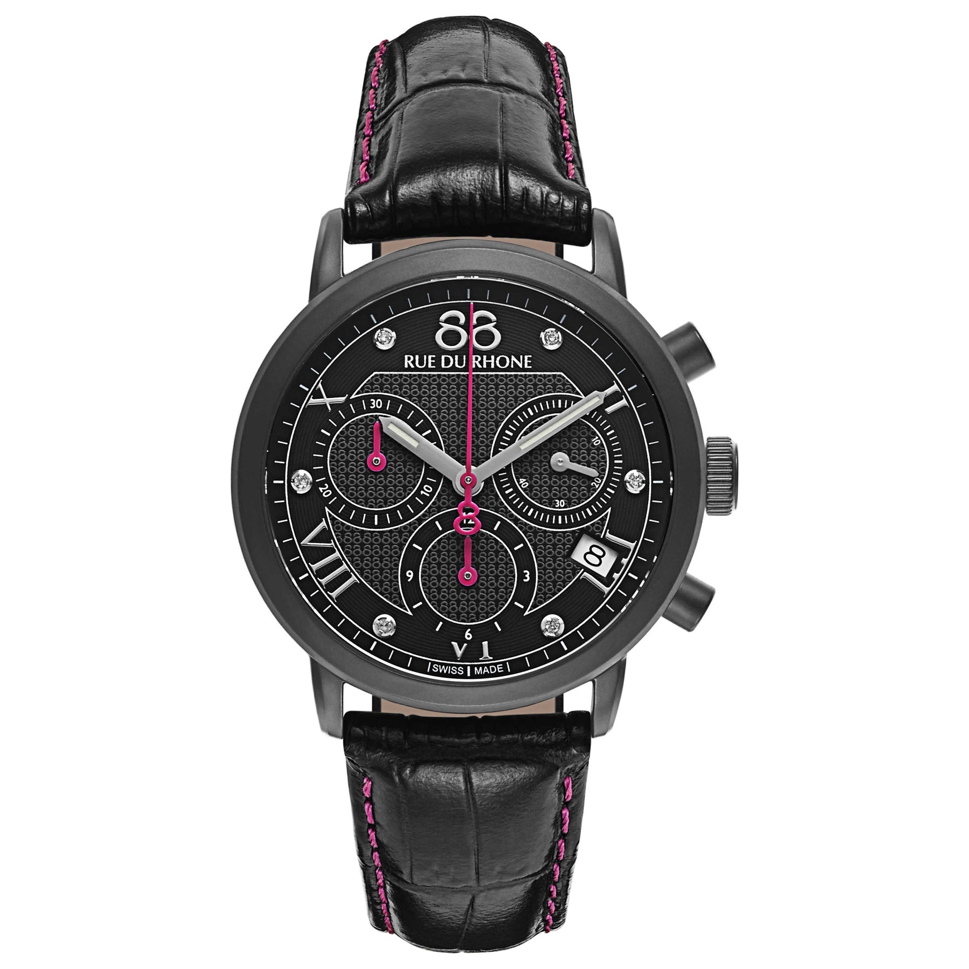 88 Rue du Rhone, Double 8 Origin Chronograph, Women's Watch, Stainless Steel Black PVD Coated Case, Leather Strap, Swiss Quartz (Battery-Powered), 87WA130027
