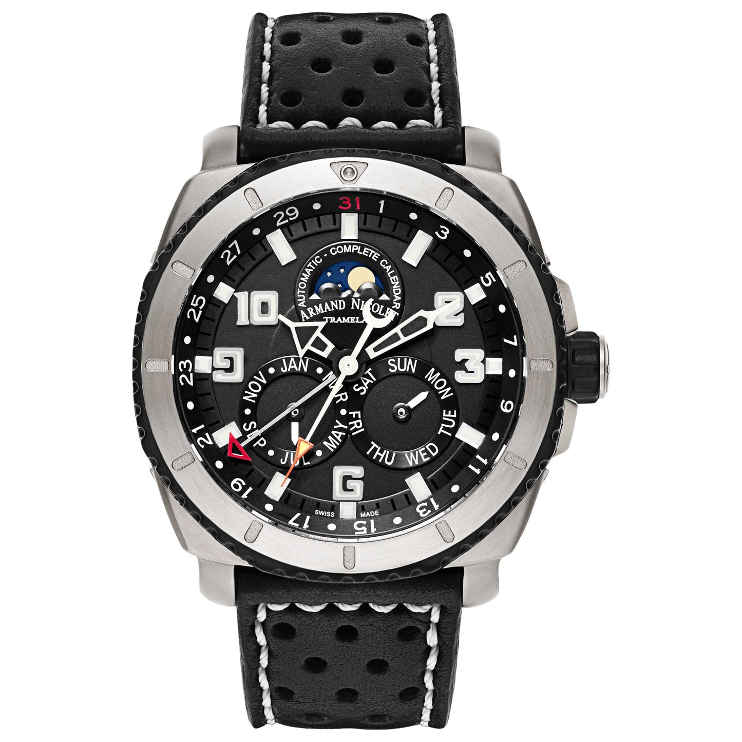 Armand Nicolet, S05 Complete Calendar, Men's Watch, Titanium Case, Leather Strap, Automatic, T612A-GR-P160NR4