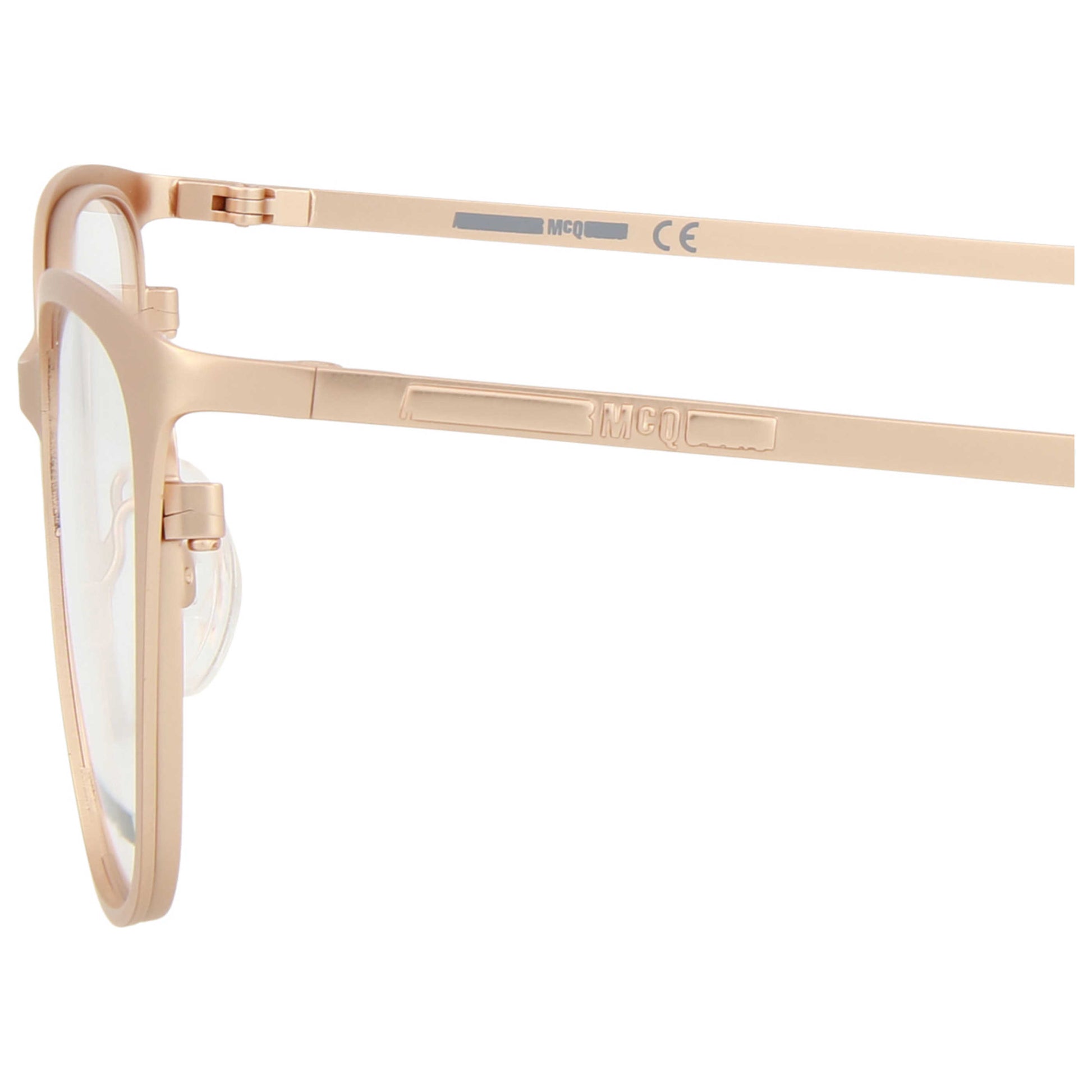 Alexander McQueen presents the McQ women's opticals. These eye-catching frames boast a golden metal design and a 50mm lens width. The perfect fusion of elegance and unique McQueen style. MQ0295OP-30009198-003