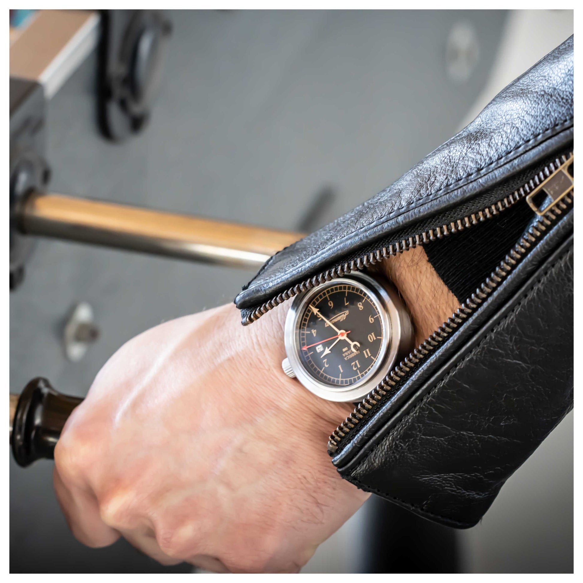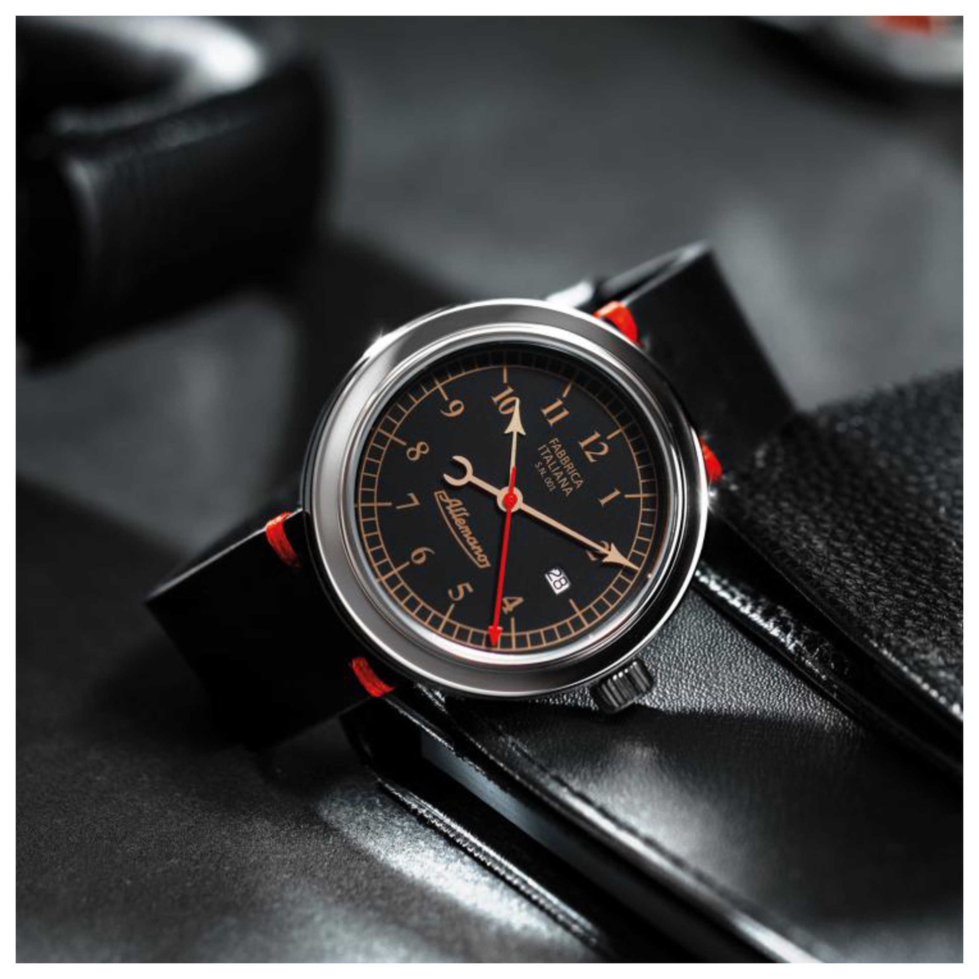Step into the world of elegance with the Allemano 1919 watch, a testament to Italian craftsmanship. This automatic men's watch, equipped with Glashutte Calibre 39-22, offers a 40-hour power reserve and smooth pull and push crown operation. An exhibition case back reveals the intricate workings beneath the black dial, adorned with a date display at 6 o'clock. Enclosed within a round 44mm stainless steel case, it comes with a scratch-resistant sapphire crystal and offers water resistance up to 50m. Completing this piece is a black leather strap with a pin buckle clasp, perfect for the discerning gentleman. DAYA1919NPPB-N