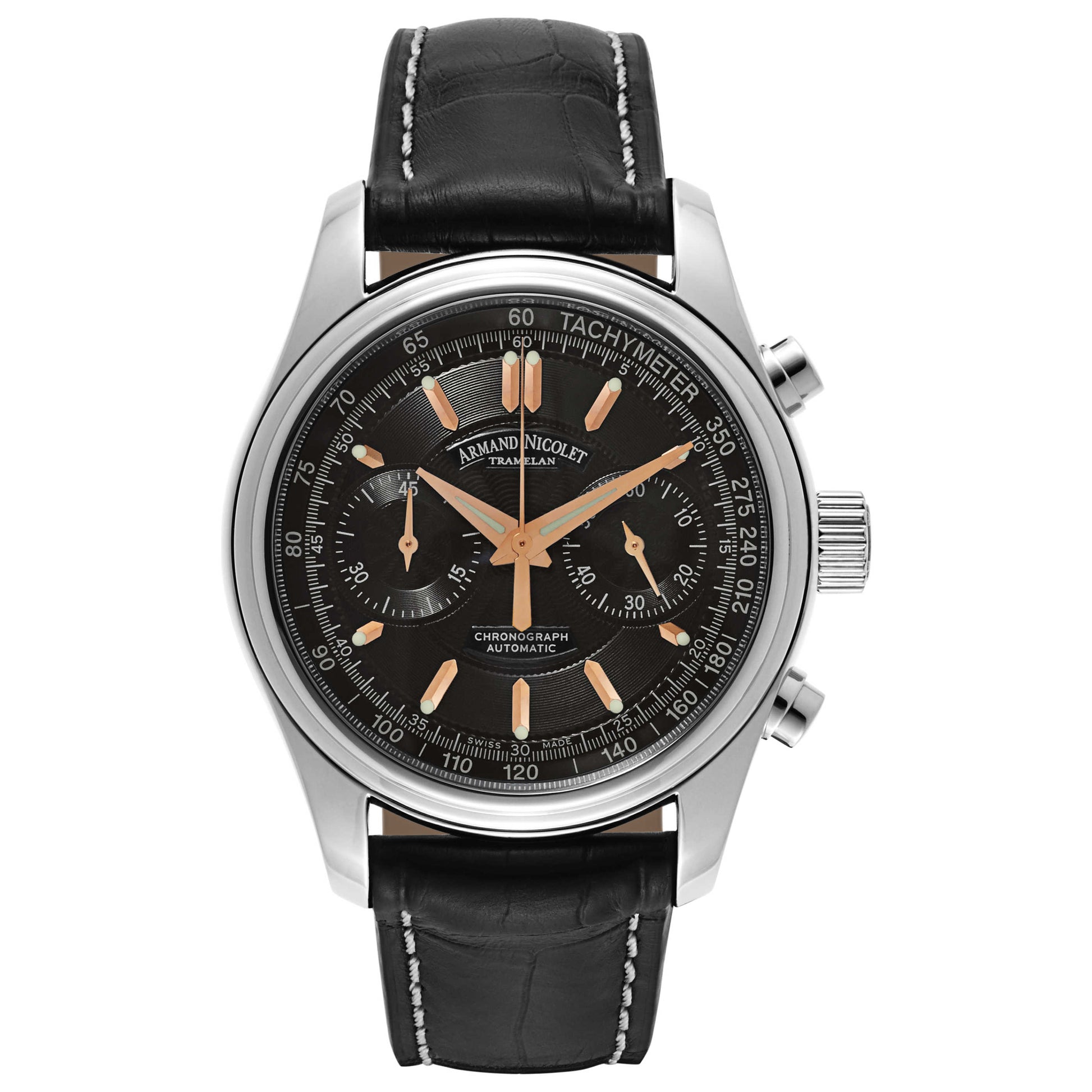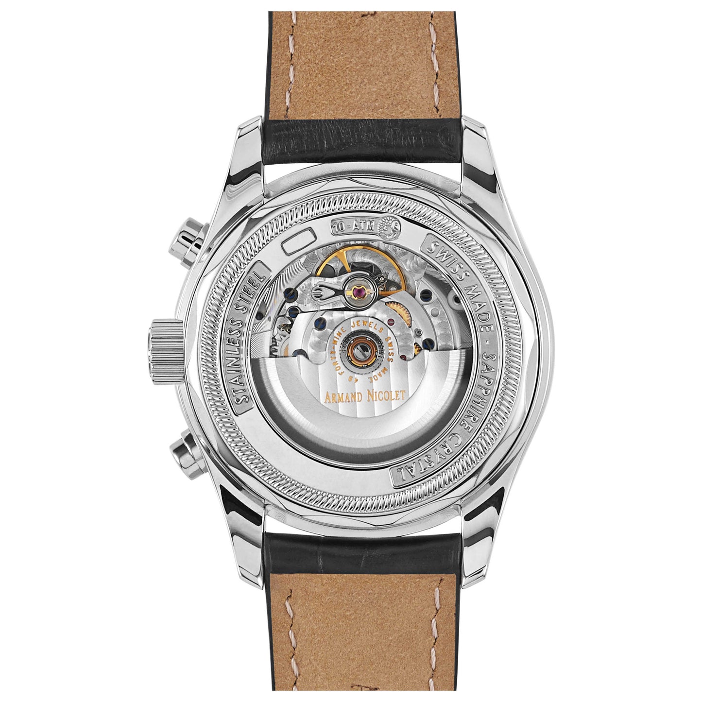 Armand Nicolet, M02, Men's Watch, Stainless Steel Case, Leather Alligator Strap, Swiss Mechanical Automatic (Self-Winding), 9144A-NS-P974NR2