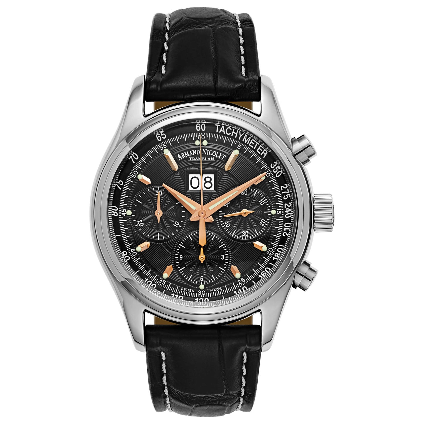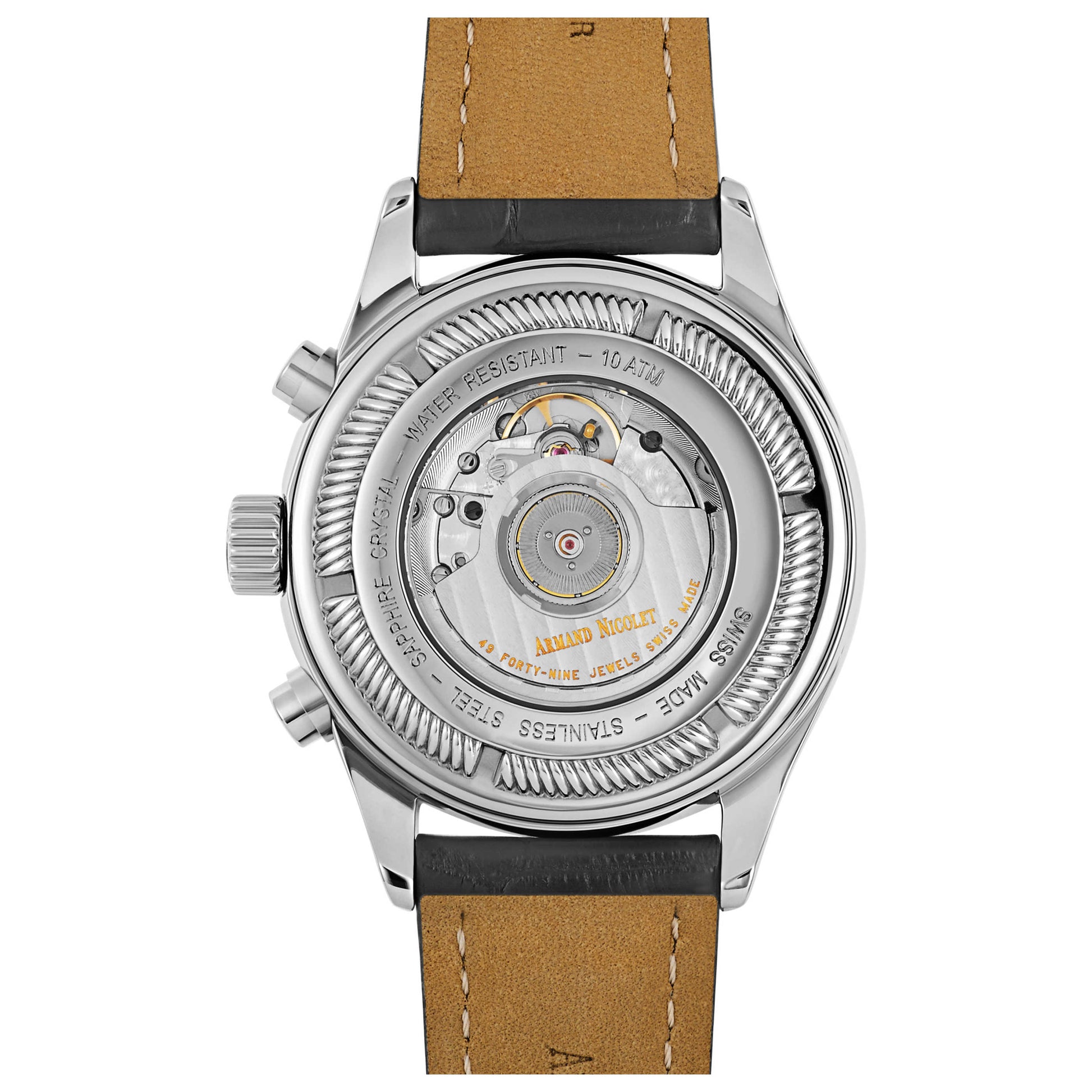 Armand Nicolet, M02, Men's Watch, Stainless Steel Case, Leather Alligator Strap, Swiss Mechanical Automatic (Self-Winding), 9148A-NS-P974NR2