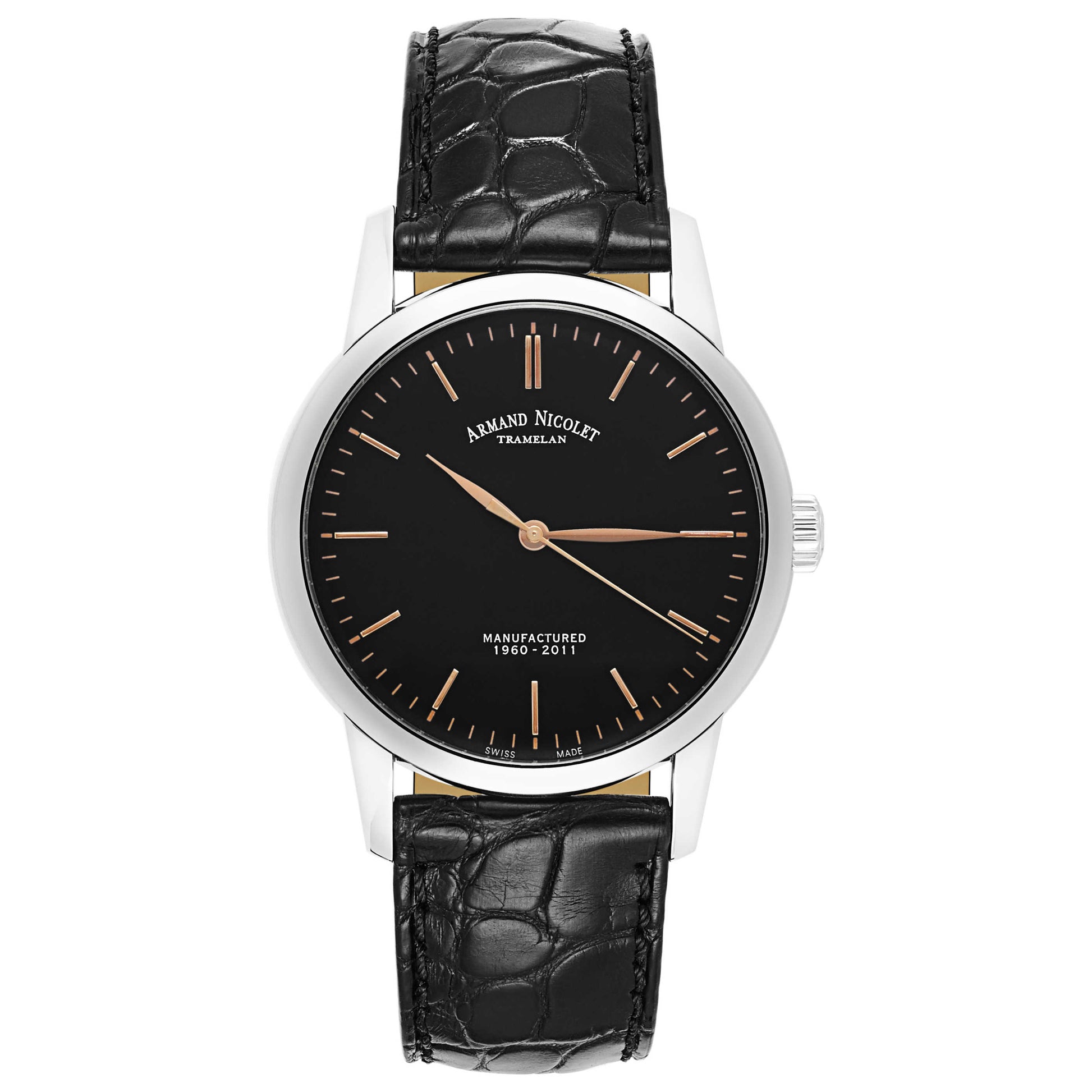Armand Nicolet, L10, Men's Watch, Stainless Steel Case, Leather Alligator Strap, Swiss Mechanical Manual (Hand-Winding), 9670A-NS-P670NR1